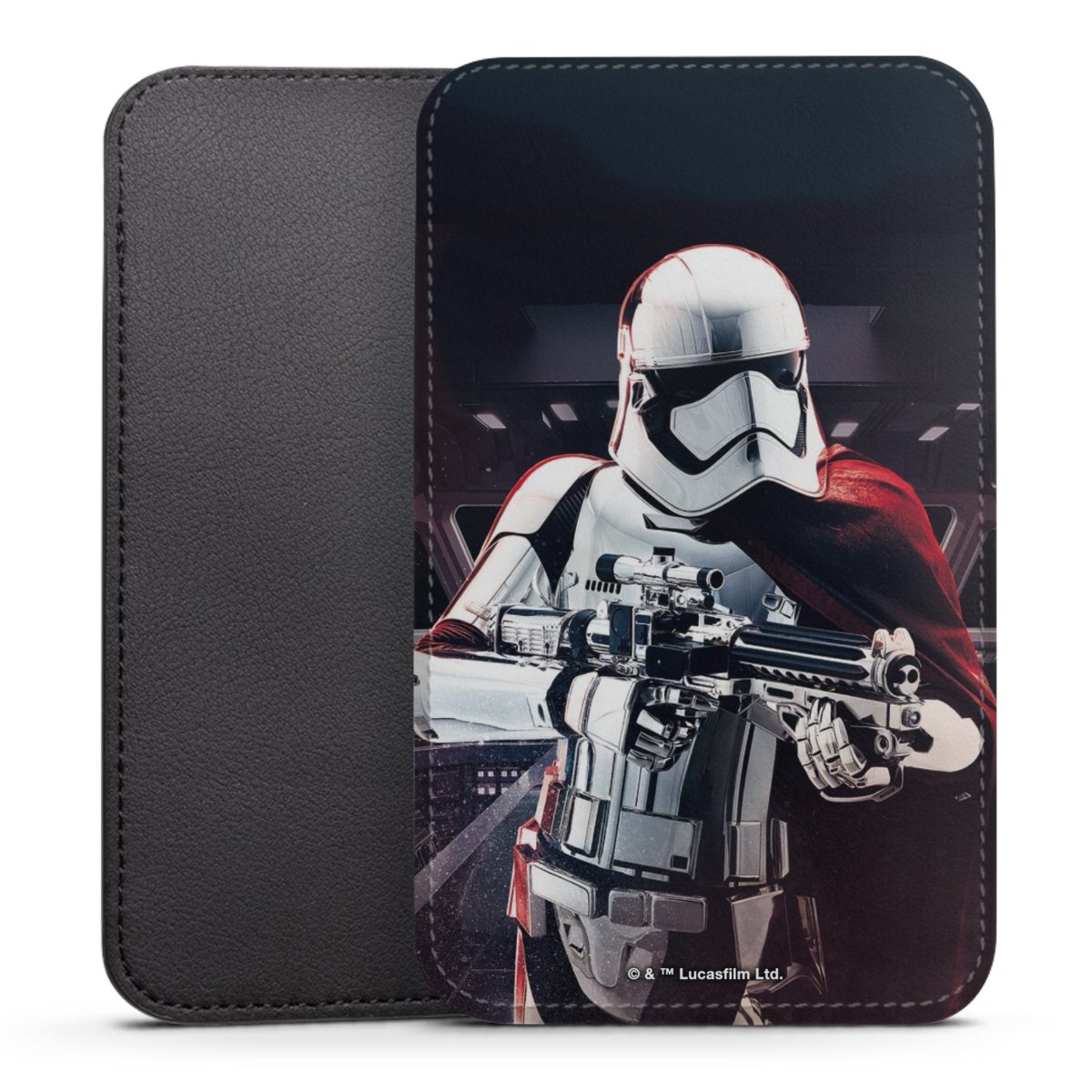 Produktdetaljer Denna praktiska ficka skyddar helt och hållet din enhet, och är tillverkad av en högkvalitativ vegansk Skai®-läderimitation i svart på baksidan och vit på den printningsbara framsidan.