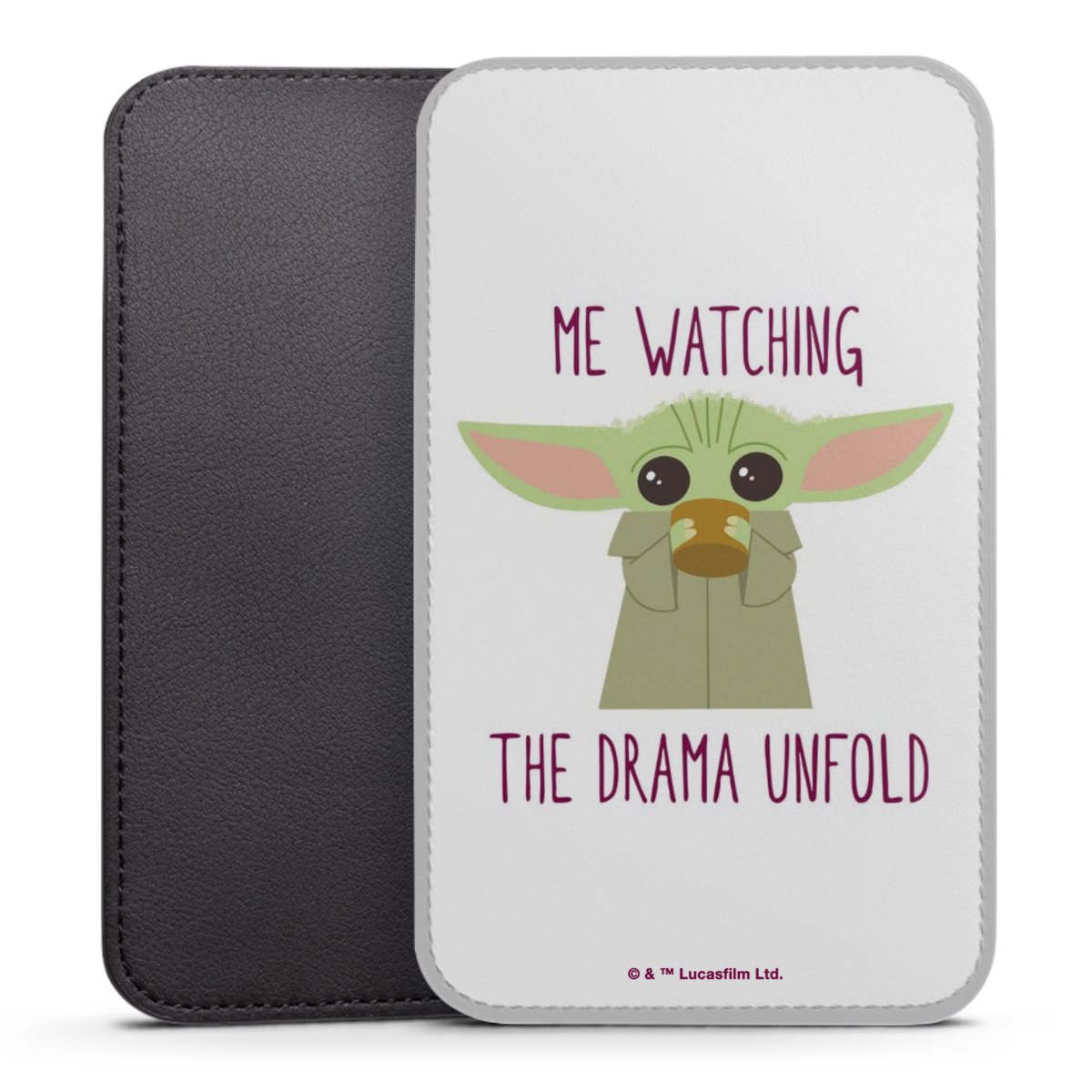 Produktdetaljer Denna praktiska ficka skyddar helt och hållet din enhet, och är tillverkad av en högkvalitativ vegansk Skai®-läderimitation i svart på baksidan och vit på den printningsbara framsidan.