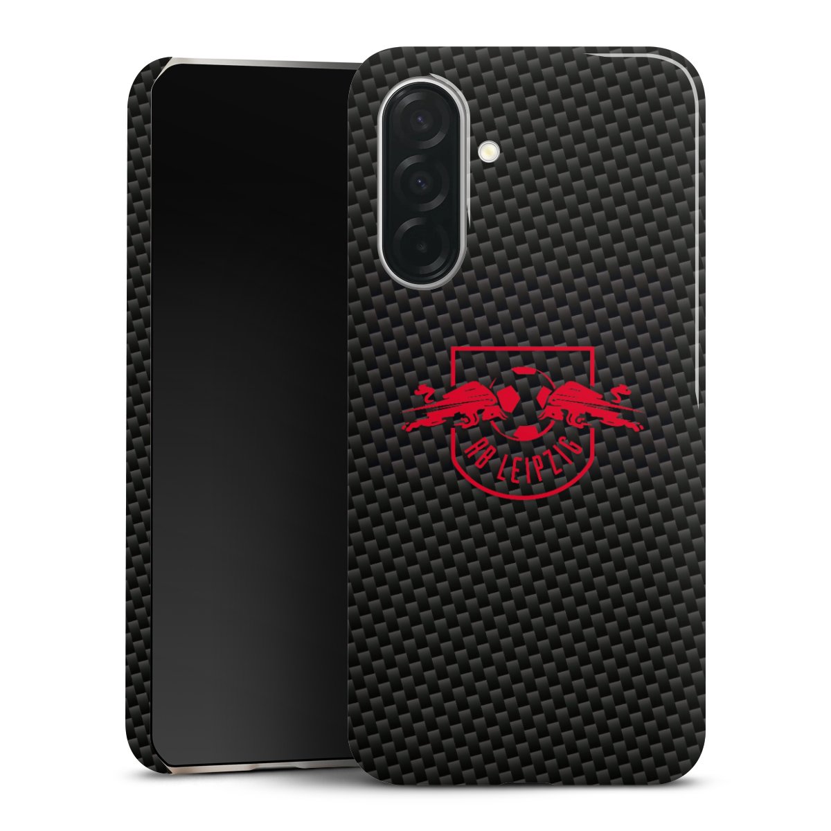 Rotes RB Leipzig Logo auf Carbonoptik