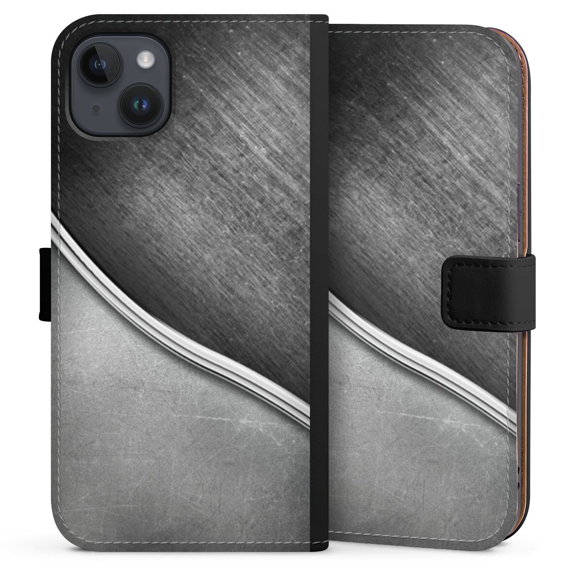 Det praktiska telefonfodralet har ett hårt skal i polykarbonat på insidan vilket ger din smartphone säkert skydd, medan vi använder en högkvalitativ, vegansk Skai®-skinnimitation för att bilda fliken och utsidan av fodralet. Du kan öppna locket åt sidan och fack för sedlar och bankkort ingår. Fodralet stängs med en magnetisk flik.