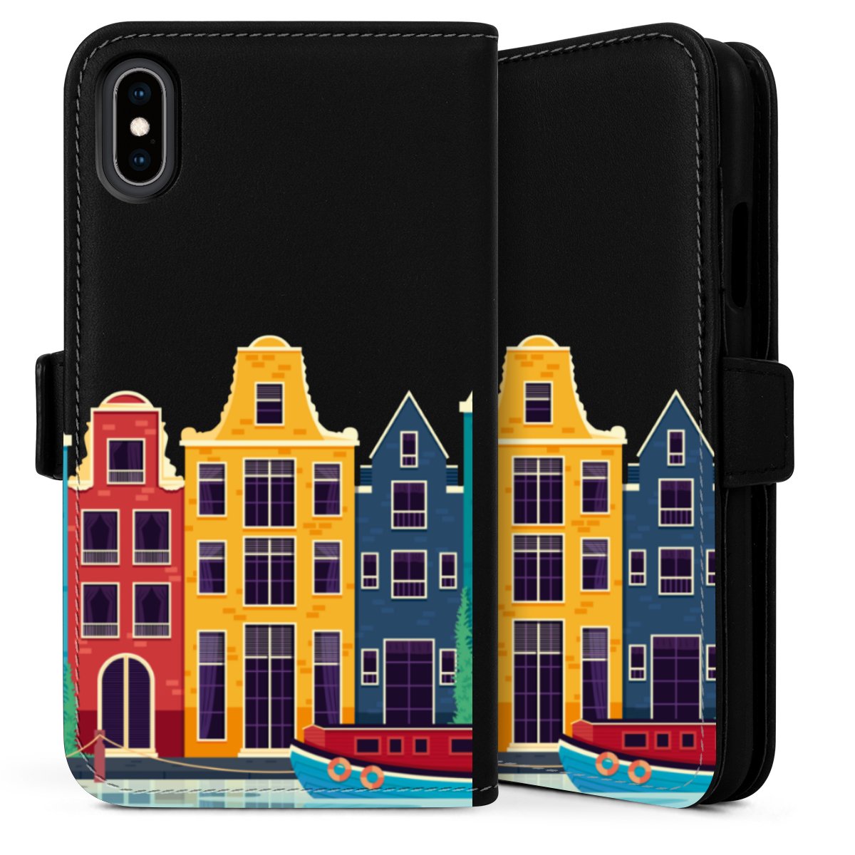Det praktiska telefonfodralet har ett hårt skal i polykarbonat på insidan vilket ger din smartphone säkert skydd, medan vi använder en högkvalitativ, vegansk Skai®-skinnimitation för att bilda fliken och utsidan av fodralet. Du kan öppna locket åt sidan och fack för sedlar och bankkort ingår. Fodralet stängs med en magnetisk flik.