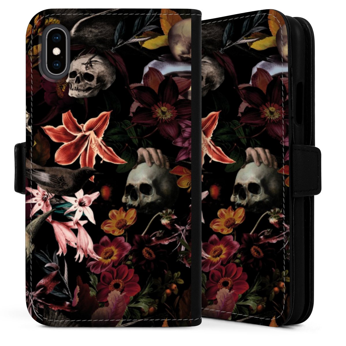 Skulls and Flowers on Dark Background