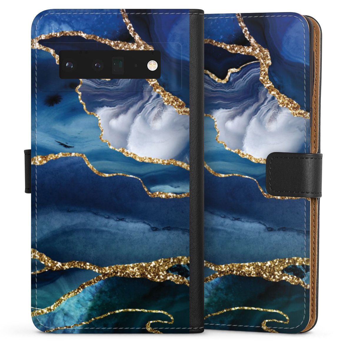 Blue Marble Gold Glitter Look