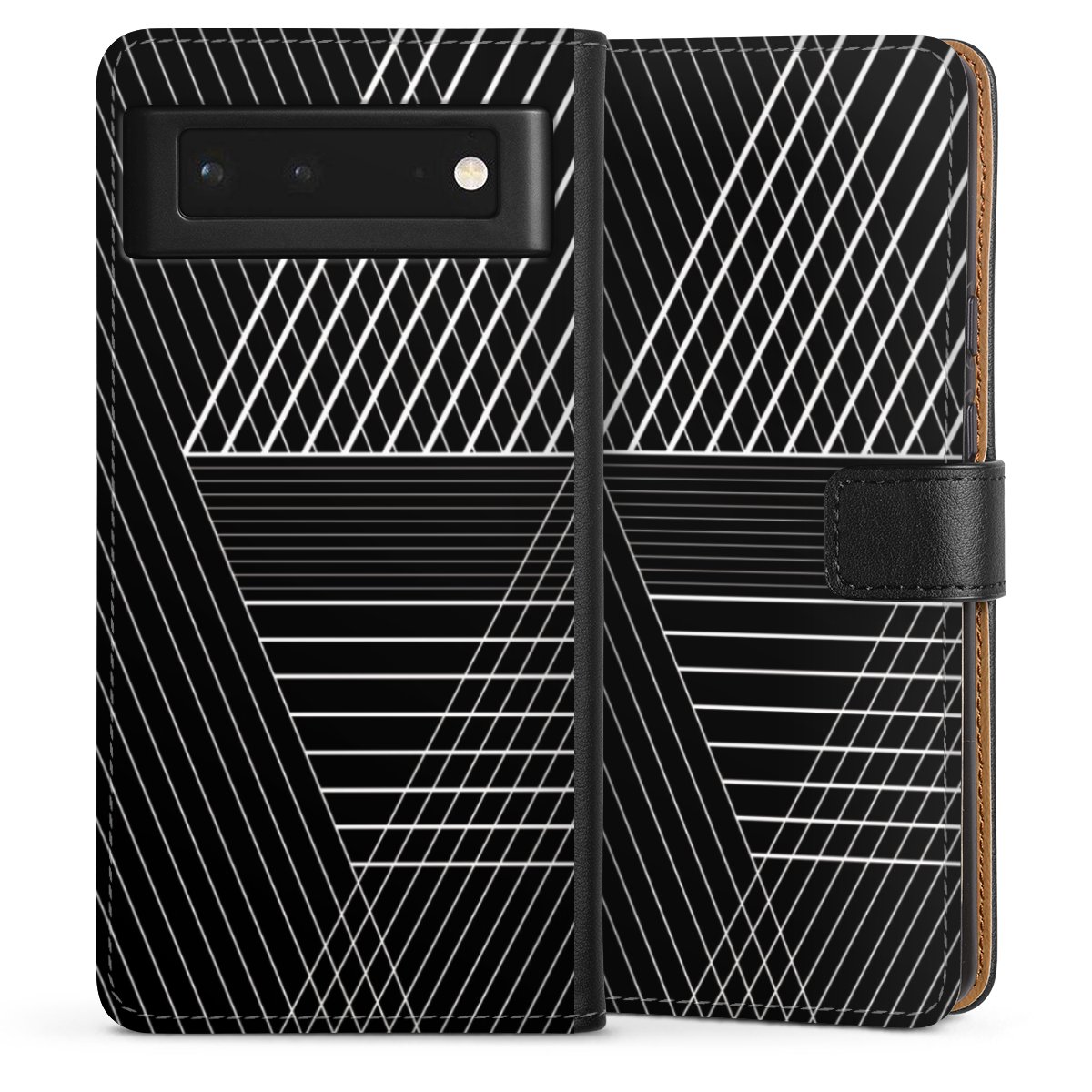 Det praktiska telefonfodralet har ett hårt skal i polykarbonat på insidan vilket ger din smartphone säkert skydd, medan vi använder en högkvalitativ, vegansk Skai®-skinnimitation för att bilda fliken och utsidan av fodralet. Du kan öppna locket åt sidan och fack för sedlar och bankkort ingår. Fodralet stängs med en magnetisk flik.