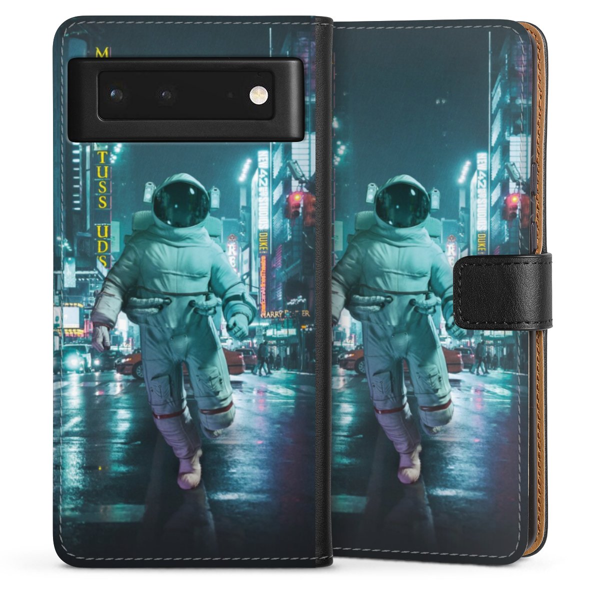 Det praktiska telefonfodralet har ett hårt skal i polykarbonat på insidan vilket ger din smartphone säkert skydd, medan vi använder en högkvalitativ, vegansk Skai®-skinnimitation för att bilda fliken och utsidan av fodralet. Du kan öppna locket åt sidan och fack för sedlar och bankkort ingår. Fodralet stängs med en magnetisk flik.