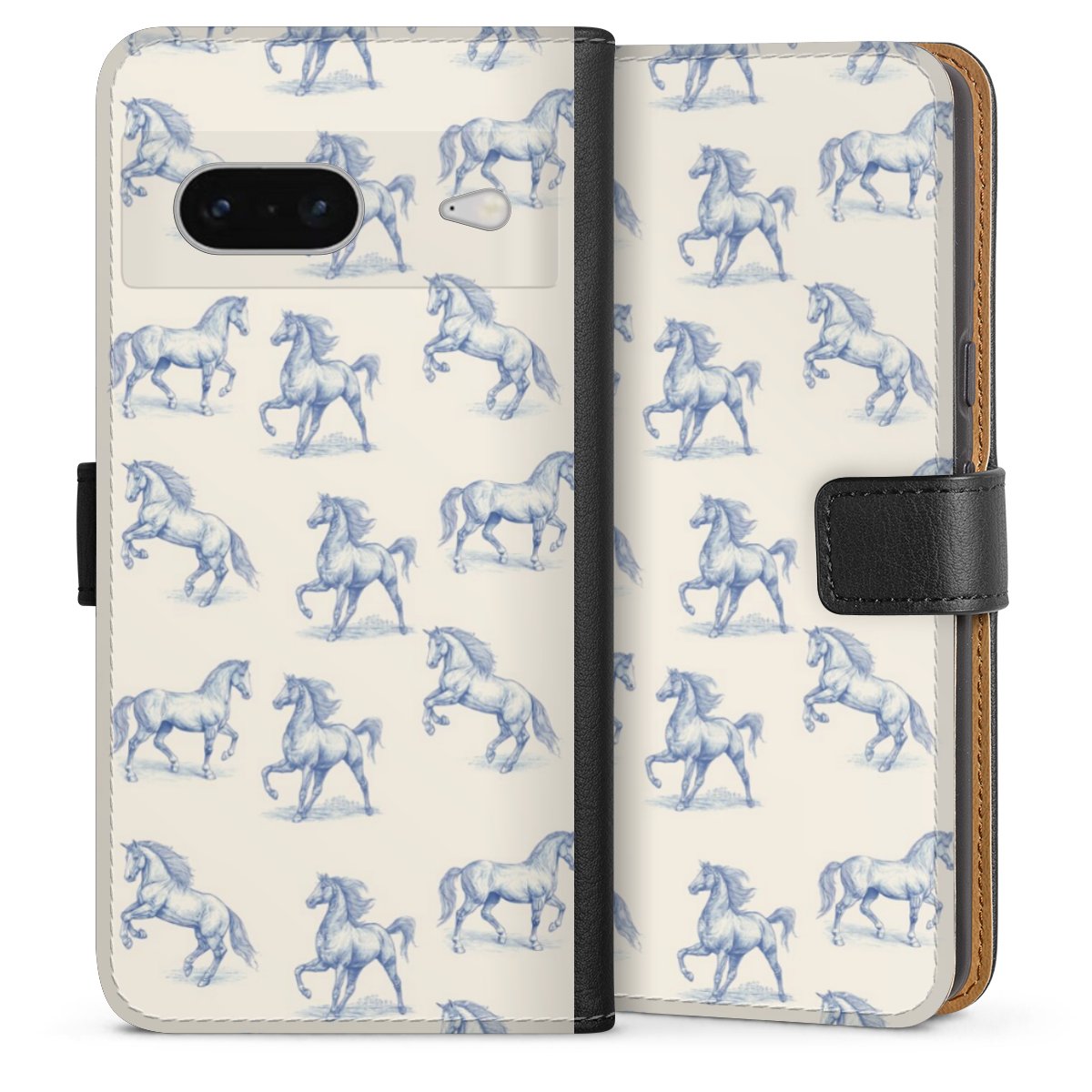 Det praktiska telefonfodralet har ett hårt skal i polykarbonat på insidan vilket ger din smartphone säkert skydd, medan vi använder en högkvalitativ, vegansk Skai®-skinnimitation för att bilda fliken och utsidan av fodralet. Du kan öppna locket åt sidan och fack för sedlar och bankkort ingår. Fodralet stängs med en magnetisk flik.