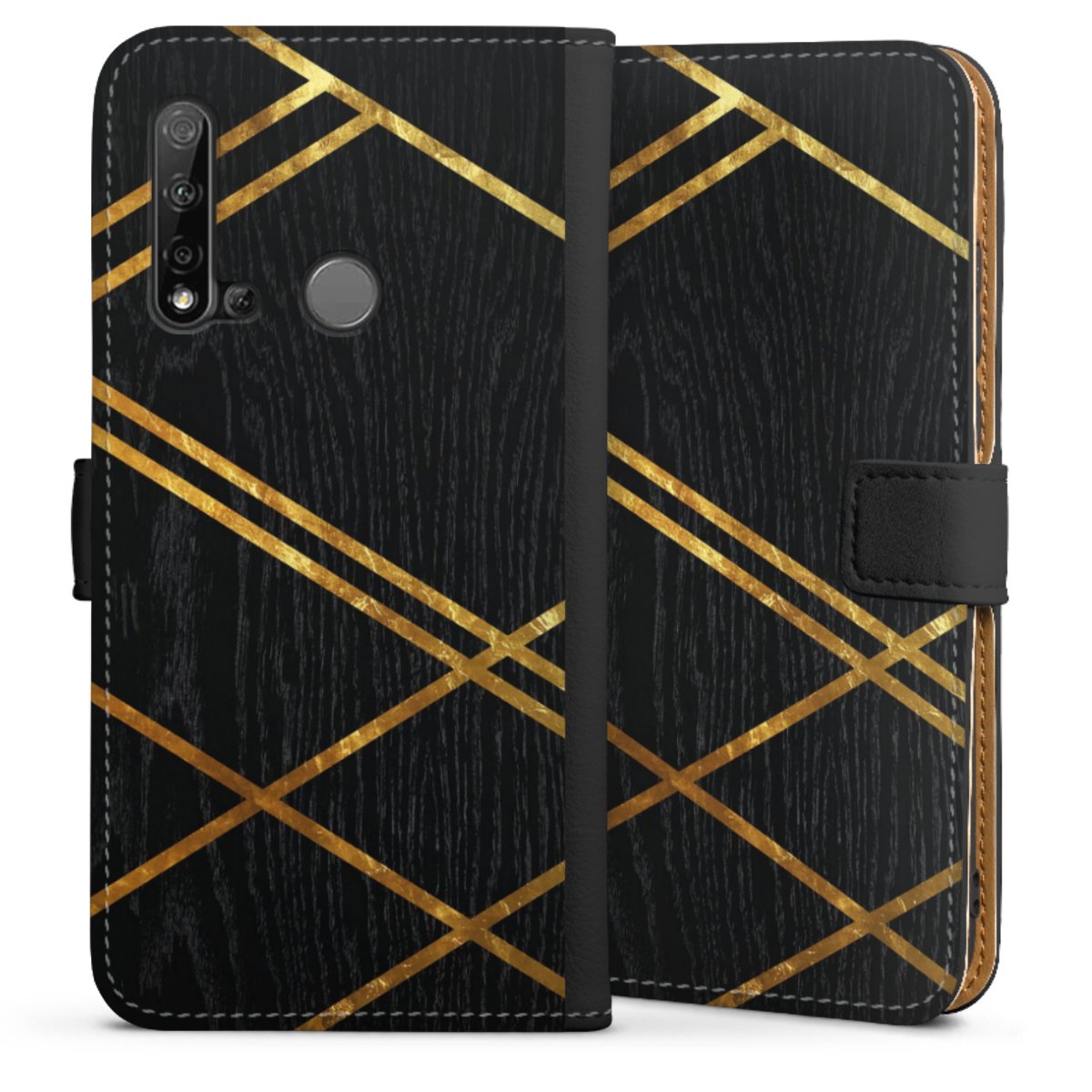 Black Geometric Pattern Golden Stripes