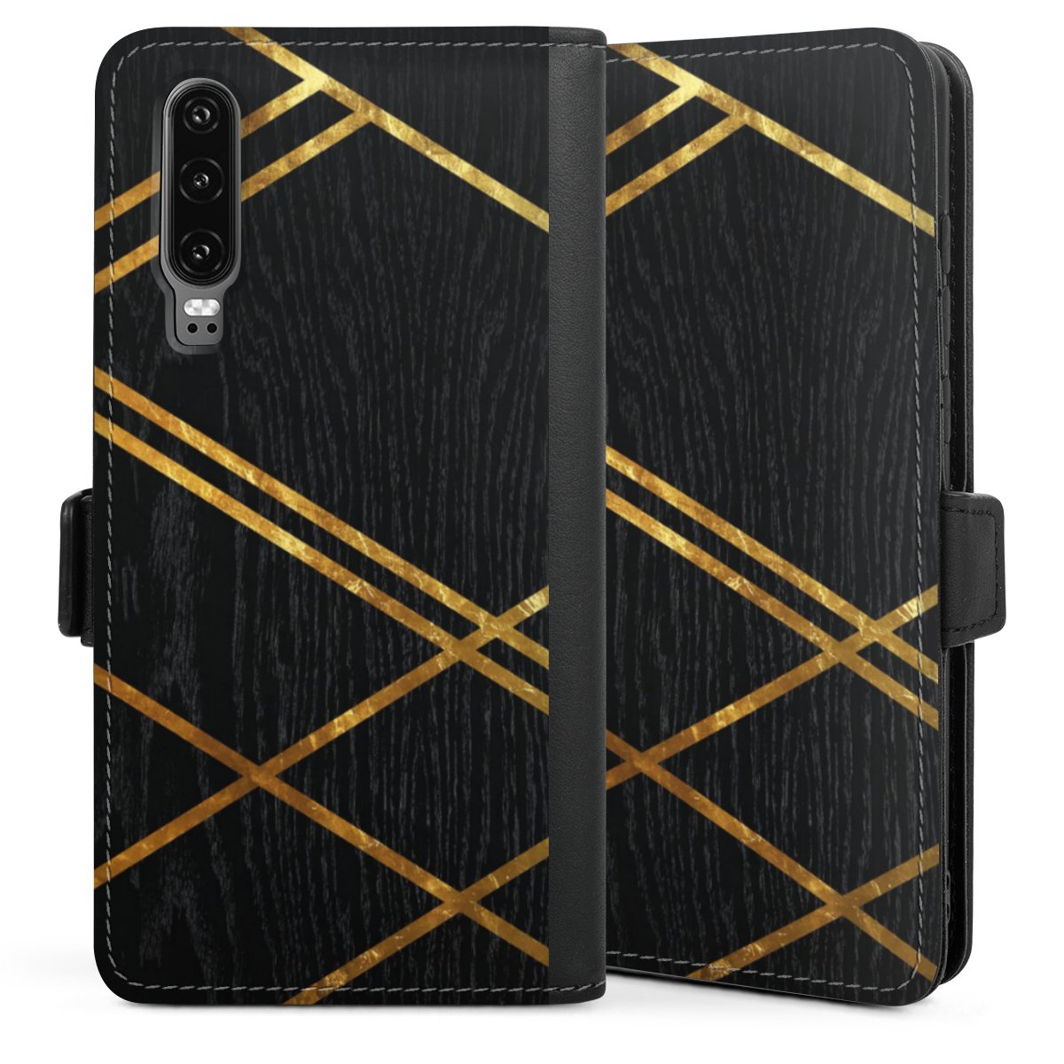 Black Geometric Pattern Golden Stripes