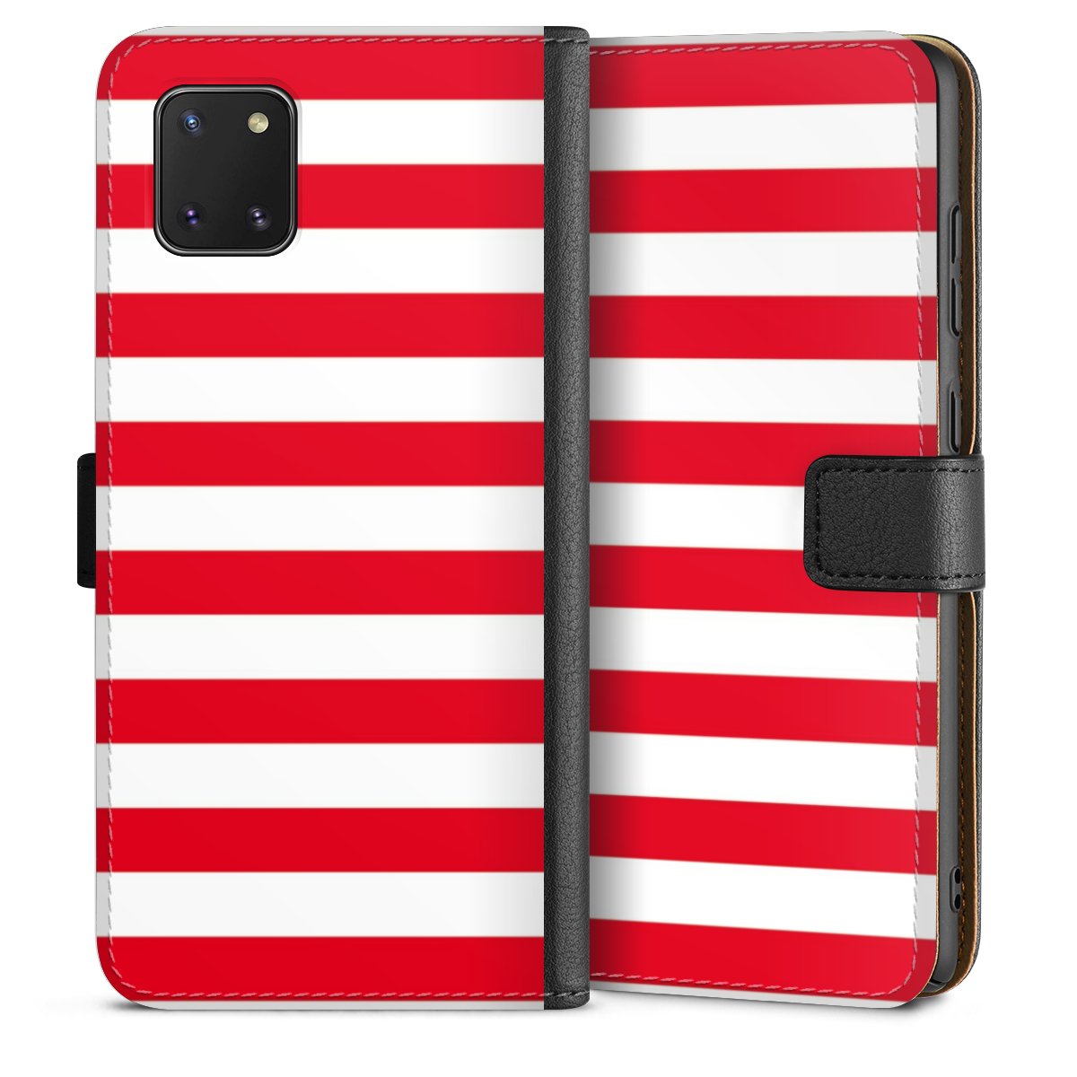 Det praktiska telefonfodralet har ett hårt skal i polykarbonat på insidan vilket ger din smartphone säkert skydd, medan vi använder en högkvalitativ, vegansk Skai®-skinnimitation för att bilda fliken och utsidan av fodralet. Du kan öppna locket åt sidan och fack för sedlar och bankkort ingår. Fodralet stängs med en magnetisk flik.