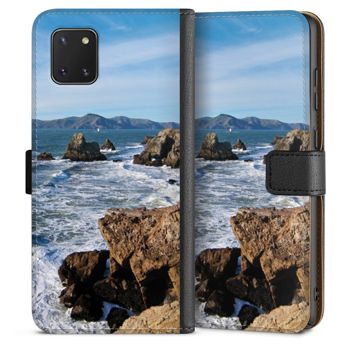 Det praktiska telefonfodralet har ett hårt skal i polykarbonat på insidan vilket ger din smartphone säkert skydd, medan vi använder en högkvalitativ, vegansk Skai®-skinnimitation för att bilda fliken och utsidan av fodralet. Du kan öppna locket åt sidan och fack för sedlar och bankkort ingår. Fodralet stängs med en magnetisk flik.