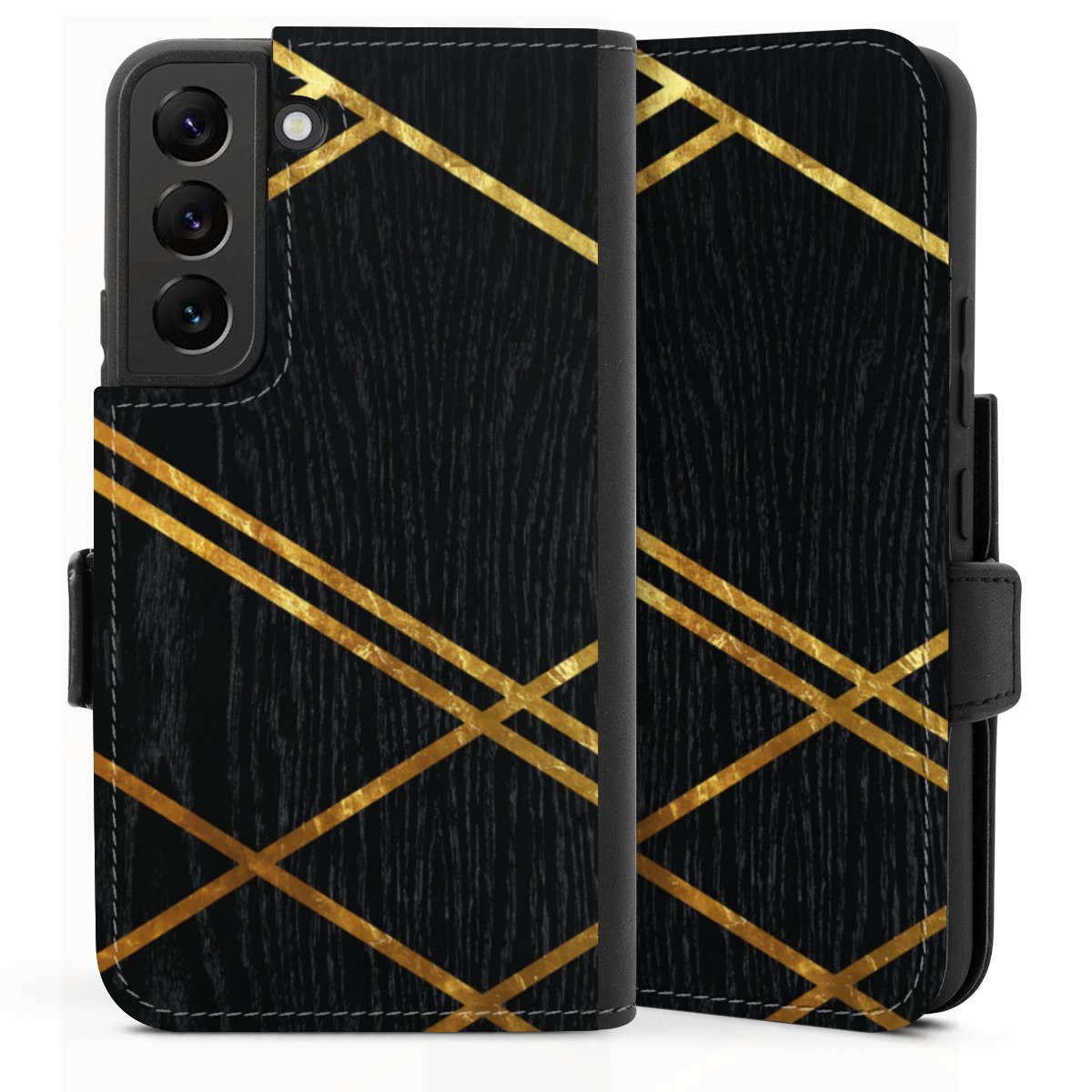 Black Geometric Pattern Golden Stripes