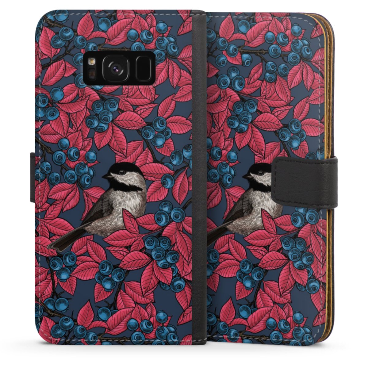 Blueberries And Birds On Navy