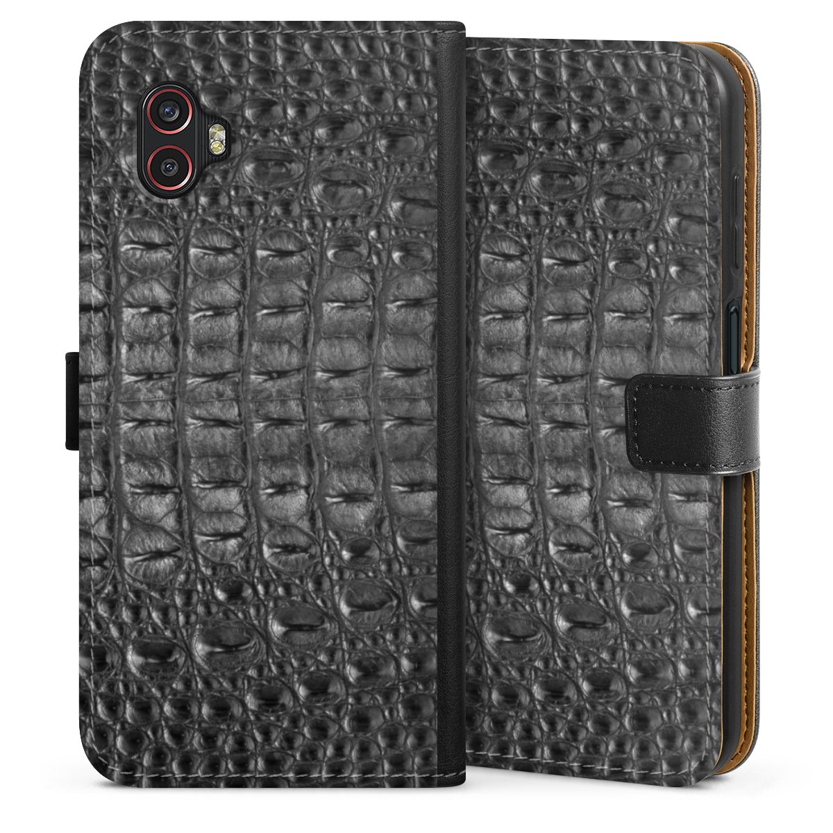 Sviker dig inte! Faux-läder Sideflip-skalet är en sann klassiker.