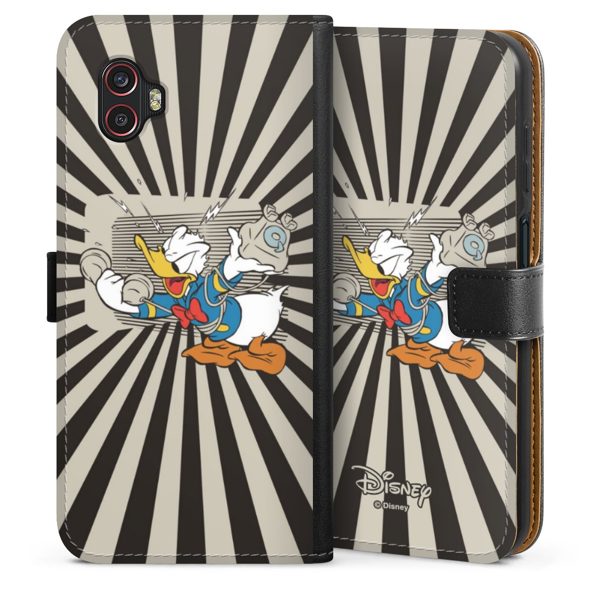 Det praktiska telefonfodralet har ett hårt skal i polykarbonat på insidan vilket ger din smartphone säkert skydd, medan vi använder en högkvalitativ, vegansk Skai®-skinnimitation för att bilda fliken och utsidan av fodralet. Du kan öppna locket åt sidan och fack för sedlar och bankkort ingår. Fodralet stängs med en magnetisk flik.