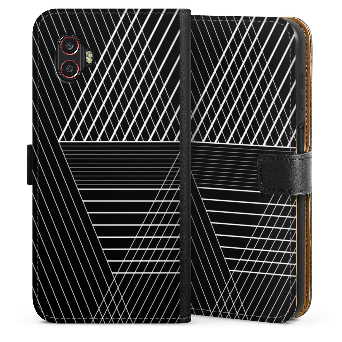 Det praktiska telefonfodralet har ett hårt skal i polykarbonat på insidan vilket ger din smartphone säkert skydd, medan vi använder en högkvalitativ, vegansk Skai®-skinnimitation för att bilda fliken och utsidan av fodralet. Du kan öppna locket åt sidan och fack för sedlar och bankkort ingår. Fodralet stängs med en magnetisk flik.