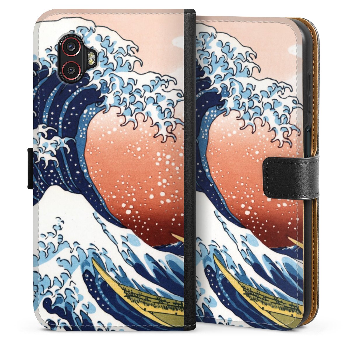Det praktiska telefonfodralet har ett hårt skal i polykarbonat på insidan vilket ger din smartphone säkert skydd, medan vi använder en högkvalitativ, vegansk Skai®-skinnimitation för att bilda fliken och utsidan av fodralet. Du kan öppna locket åt sidan och fack för sedlar och bankkort ingår. Fodralet stängs med en magnetisk flik.