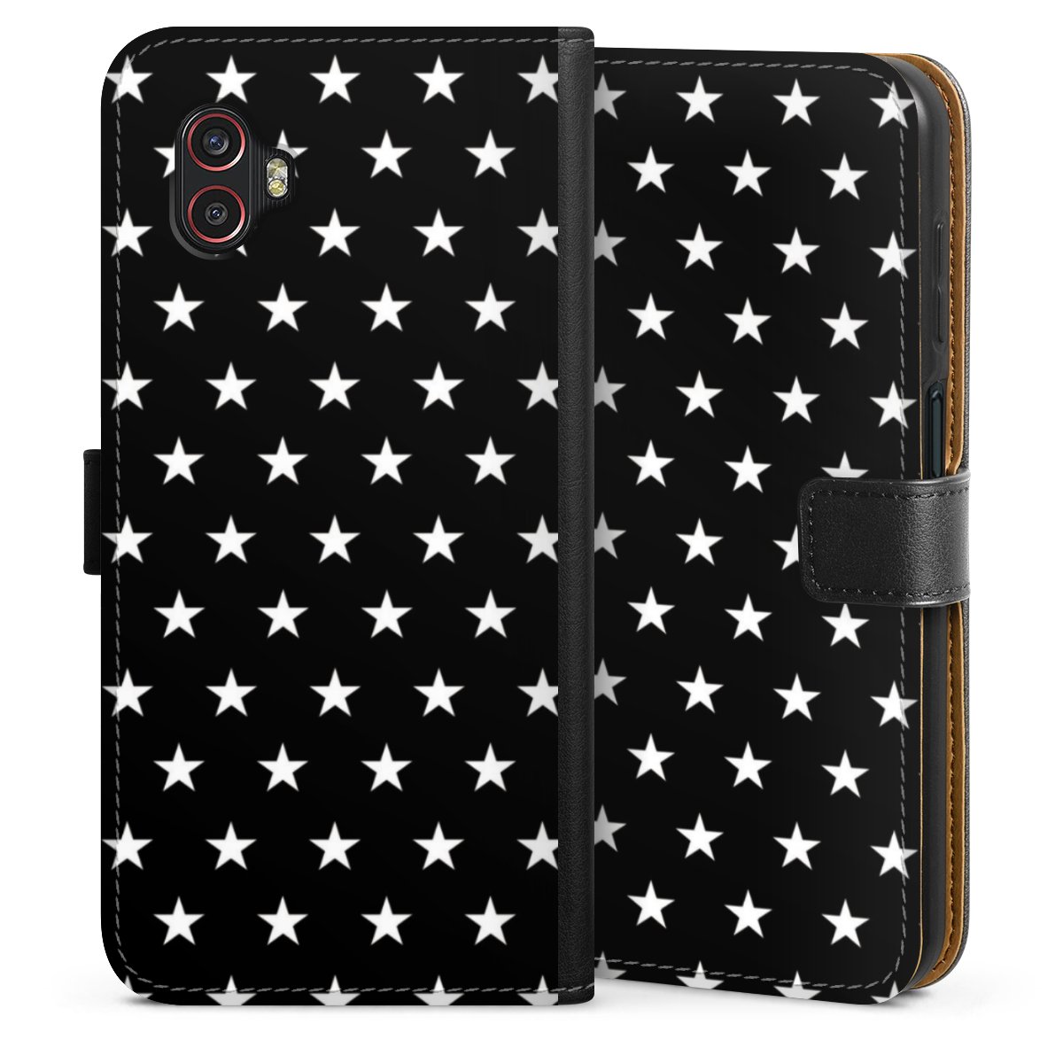 Det praktiska telefonfodralet har ett hårt skal i polykarbonat på insidan vilket ger din smartphone säkert skydd, medan vi använder en högkvalitativ, vegansk Skai®-skinnimitation för att bilda fliken och utsidan av fodralet. Du kan öppna locket åt sidan och fack för sedlar och bankkort ingår. Fodralet stängs med en magnetisk flik.
