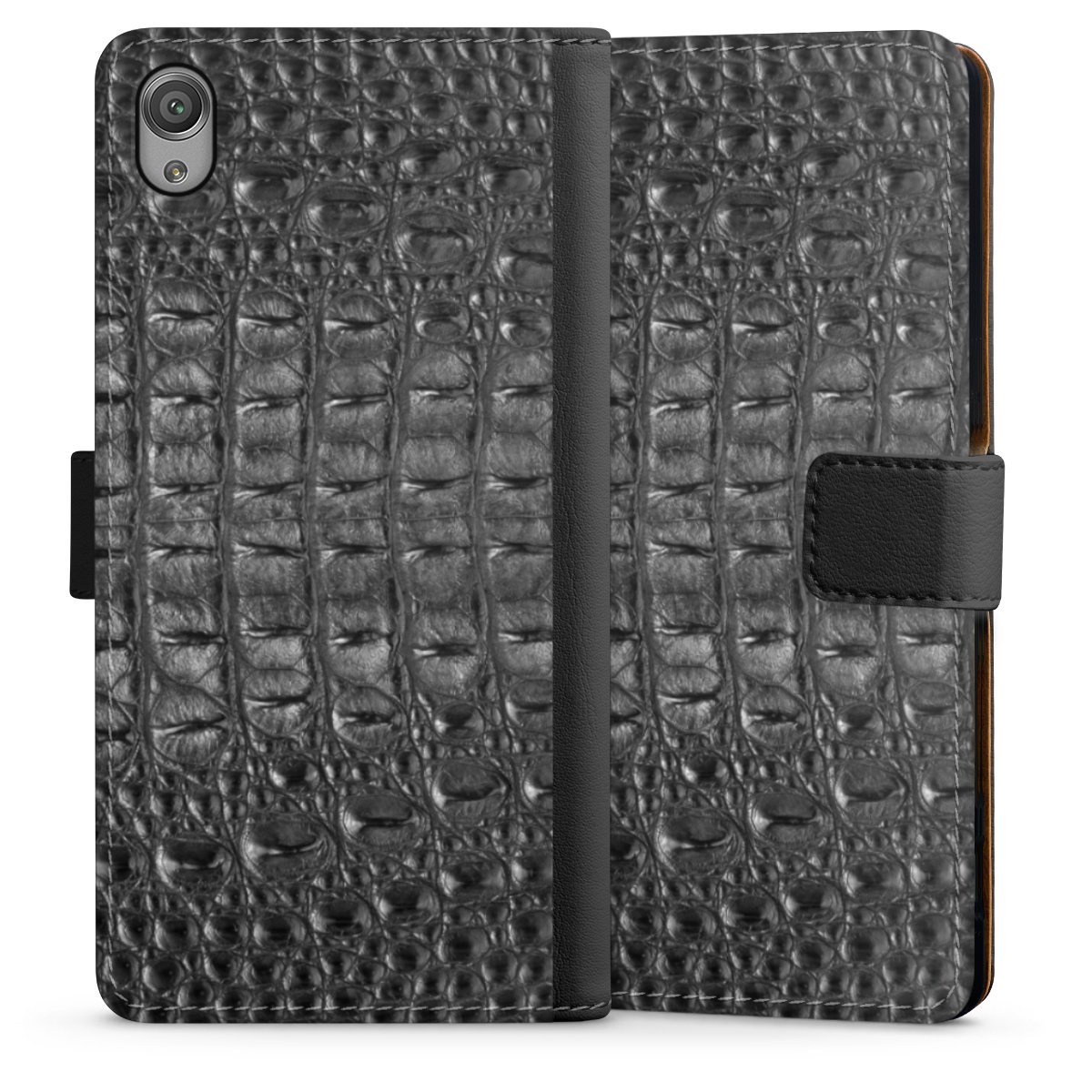Sviker dig inte! Faux-läder Sideflip-skalet är en sann klassiker.