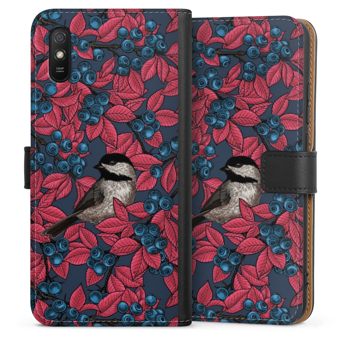 Blueberries And Birds On Navy