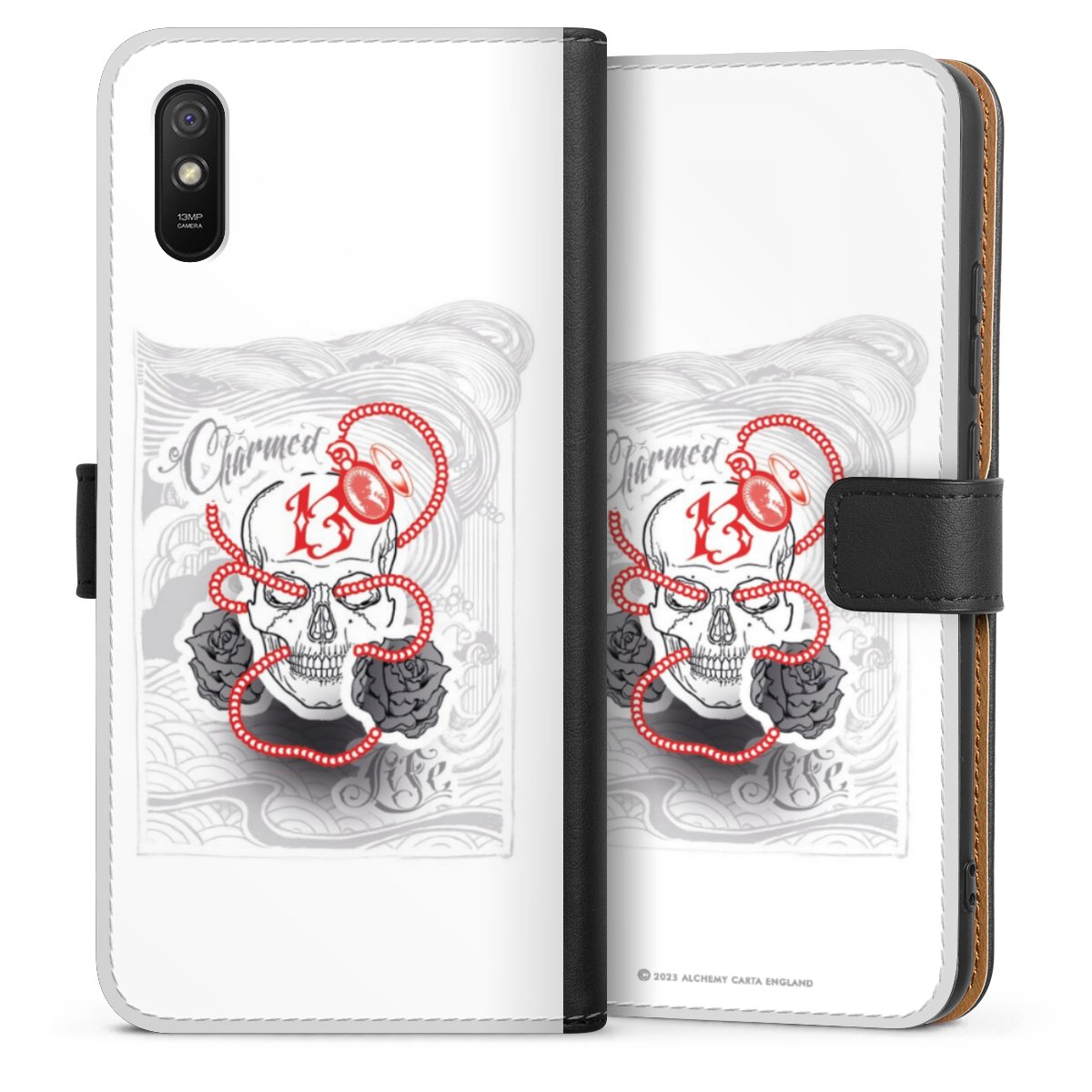 Det praktiska telefonfodralet har ett hårt skal i polykarbonat på insidan vilket ger din smartphone säkert skydd, medan vi använder en högkvalitativ, vegansk Skai®-skinnimitation för att bilda fliken och utsidan av fodralet. Du kan öppna locket åt sidan och fack för sedlar och bankkort ingår. Fodralet stängs med en magnetisk flik.
