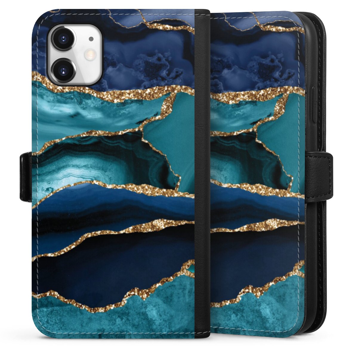 Dark and Light Blue Marble Gold Glitter Look