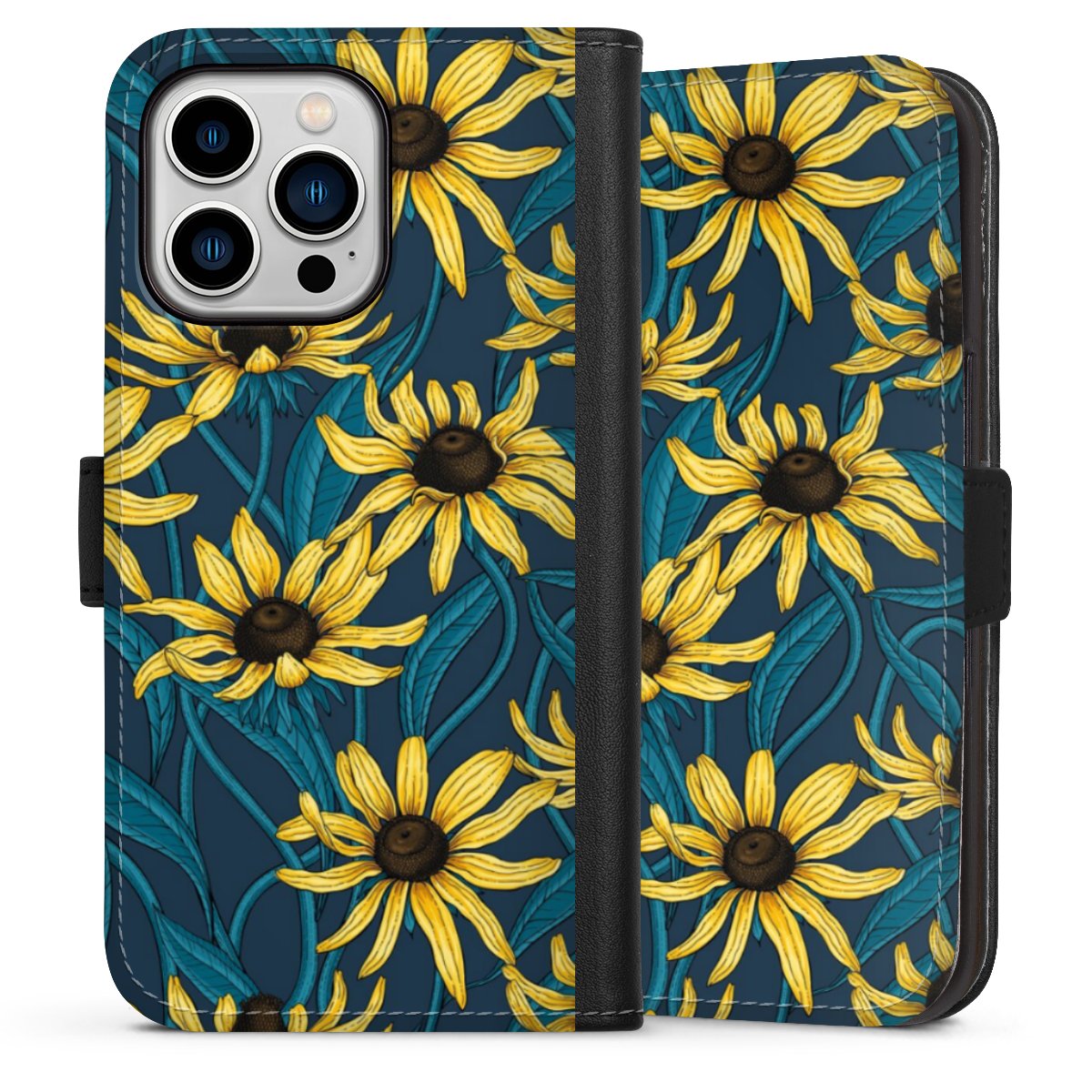 Sunflowers Pattern Dark Illustration