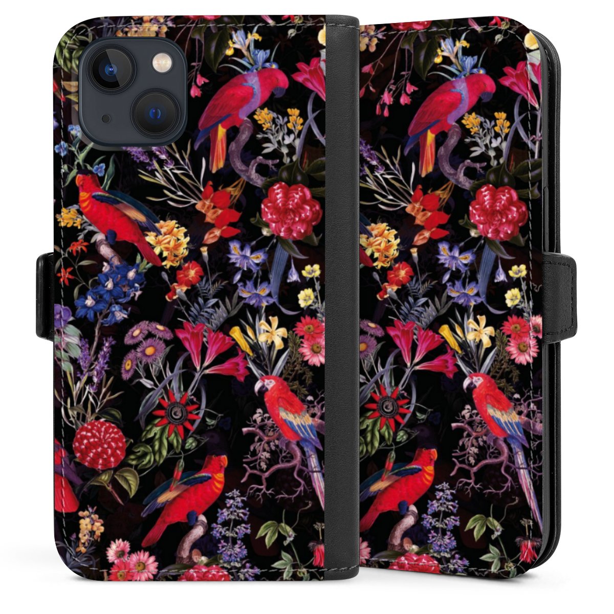 Dark Flowers and Parrots
