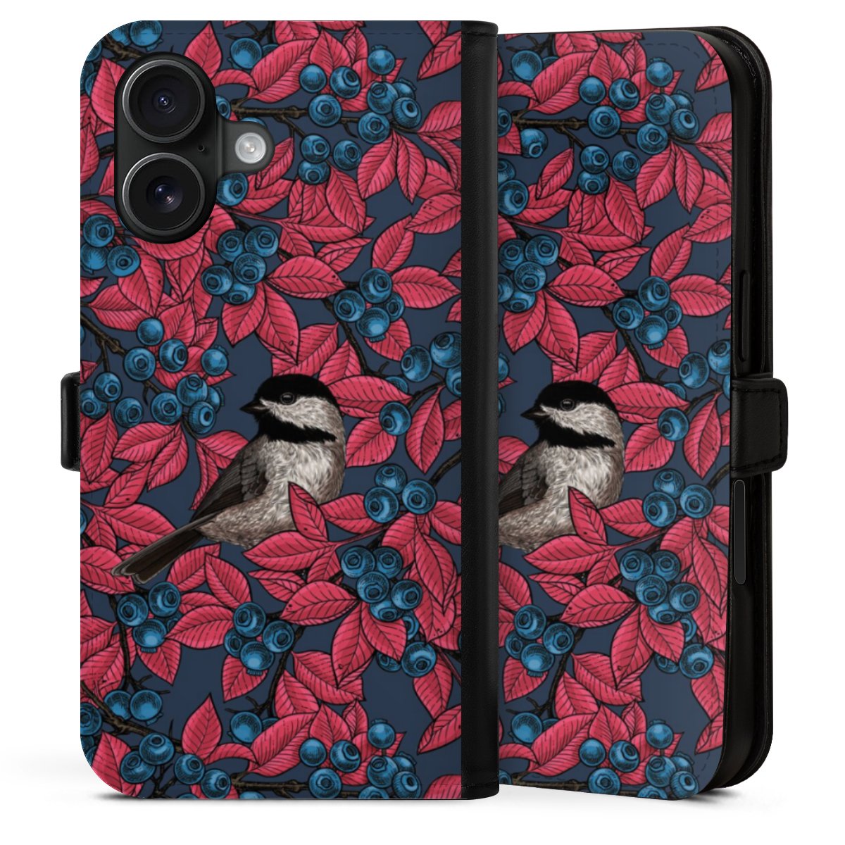 Blueberries And Birds On Navy