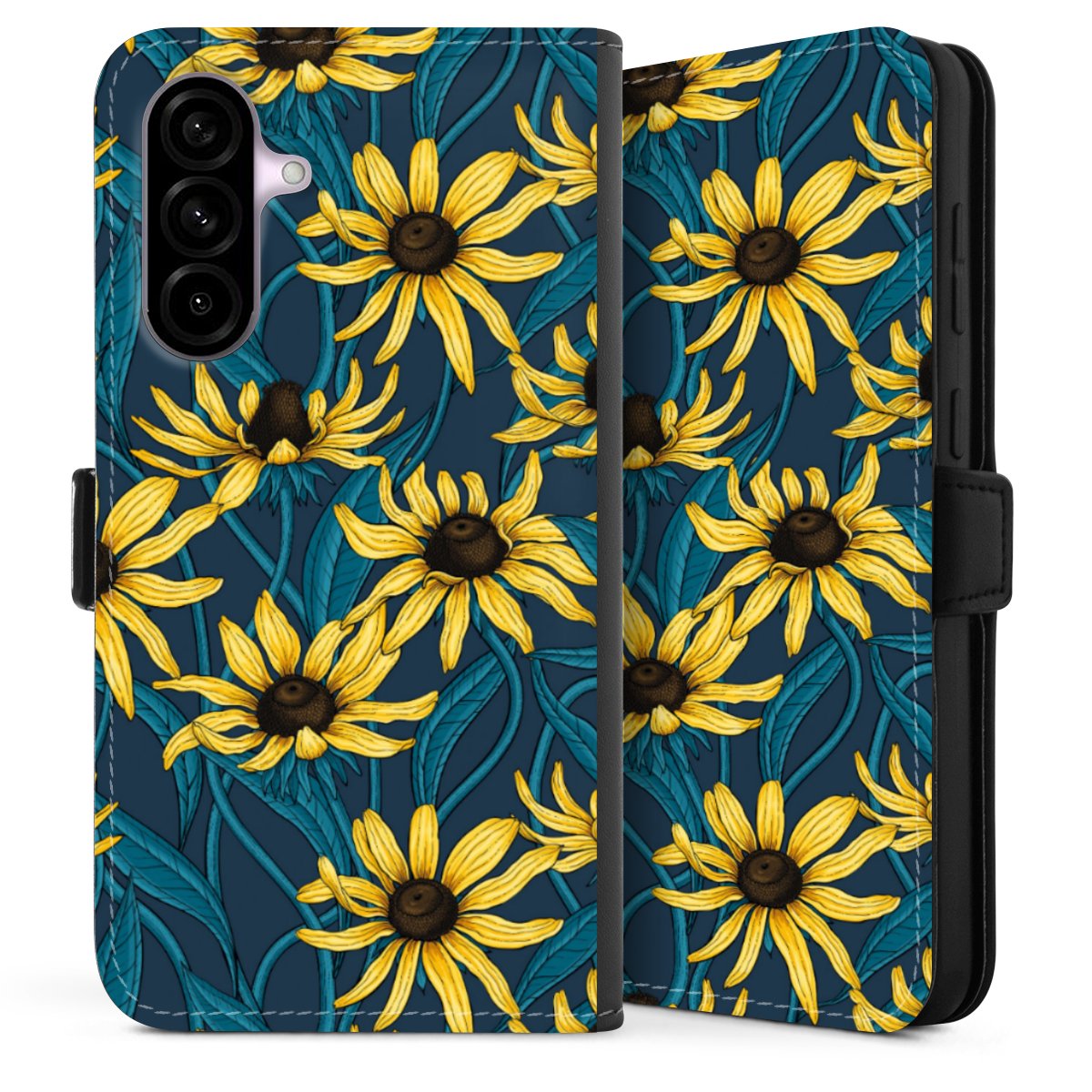 Sunflowers Pattern Dark Illustration
