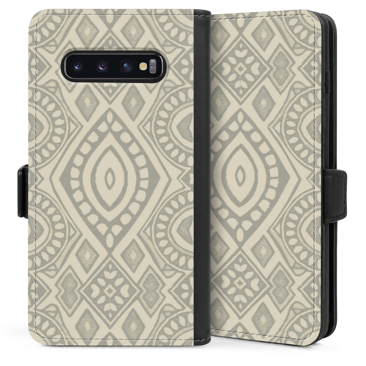 Boho Geometric Mosaic Pattern Neutral Grey and Beige