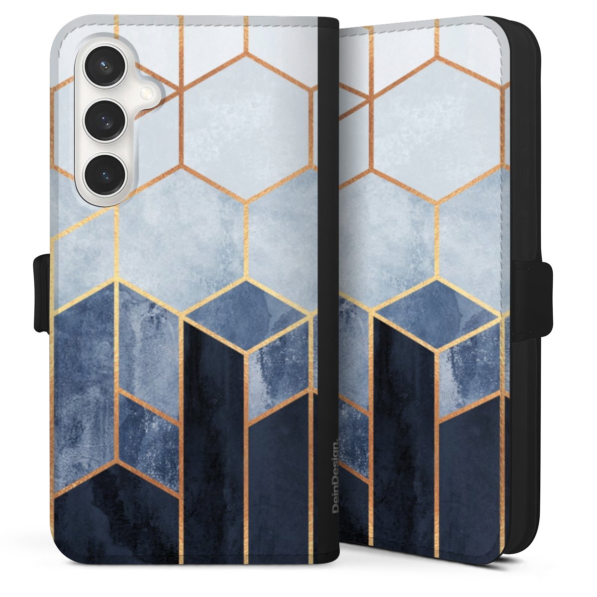 Soft Blue Hexagons Gold Print