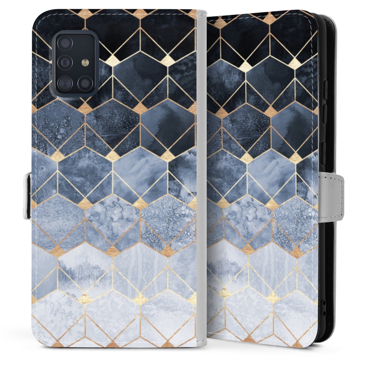 Blue Hexagons And Diamonds Gold Print