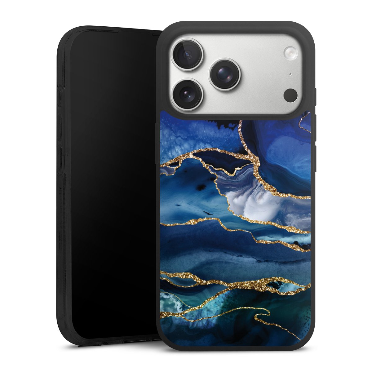 Blue Marble Gold Glitter Look