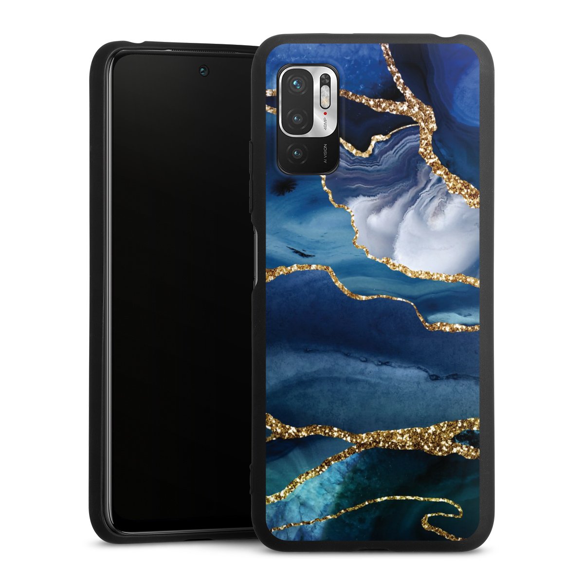 Blue Marble Gold Glitter Look