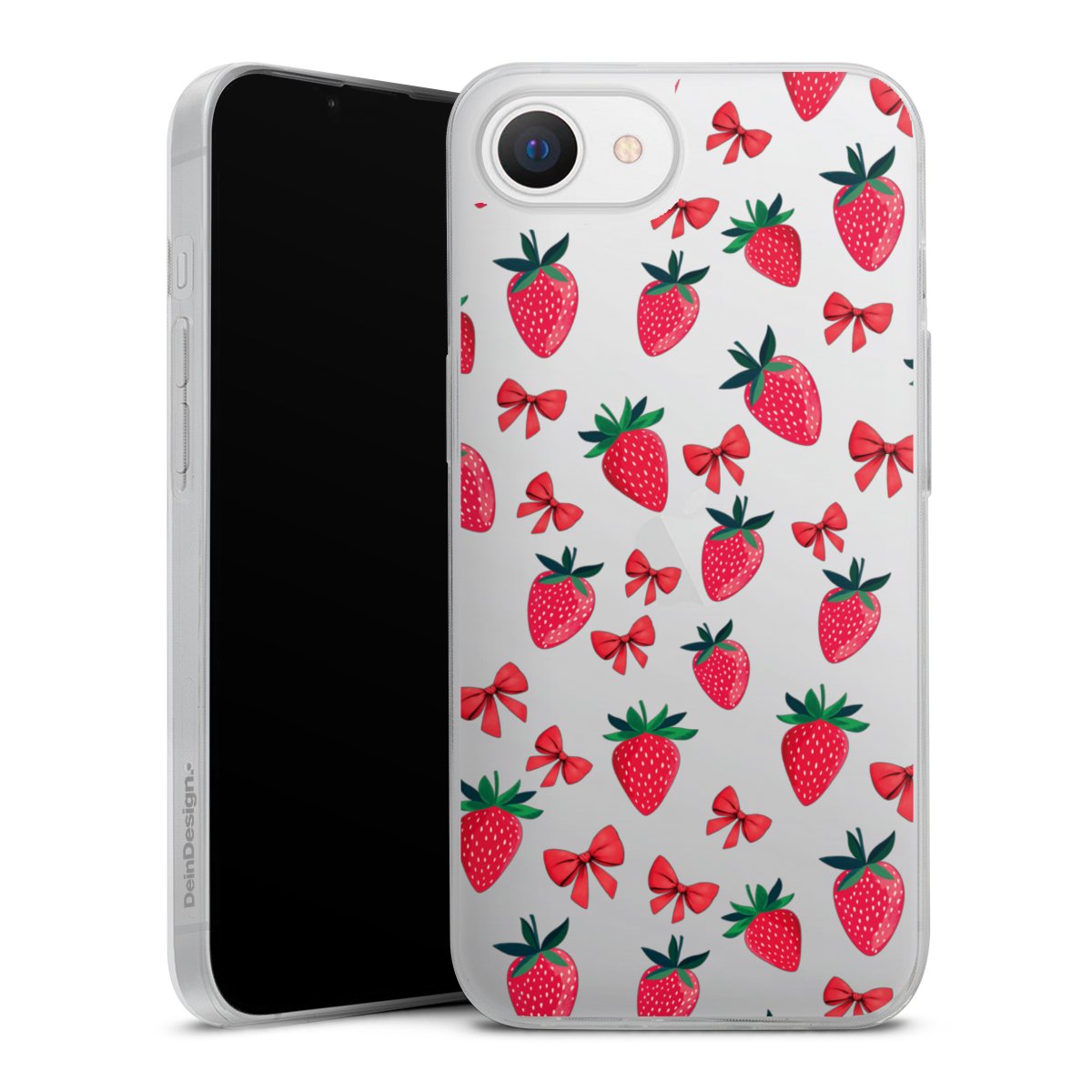 Strawberry Heart Ribbon Pattern Transparent