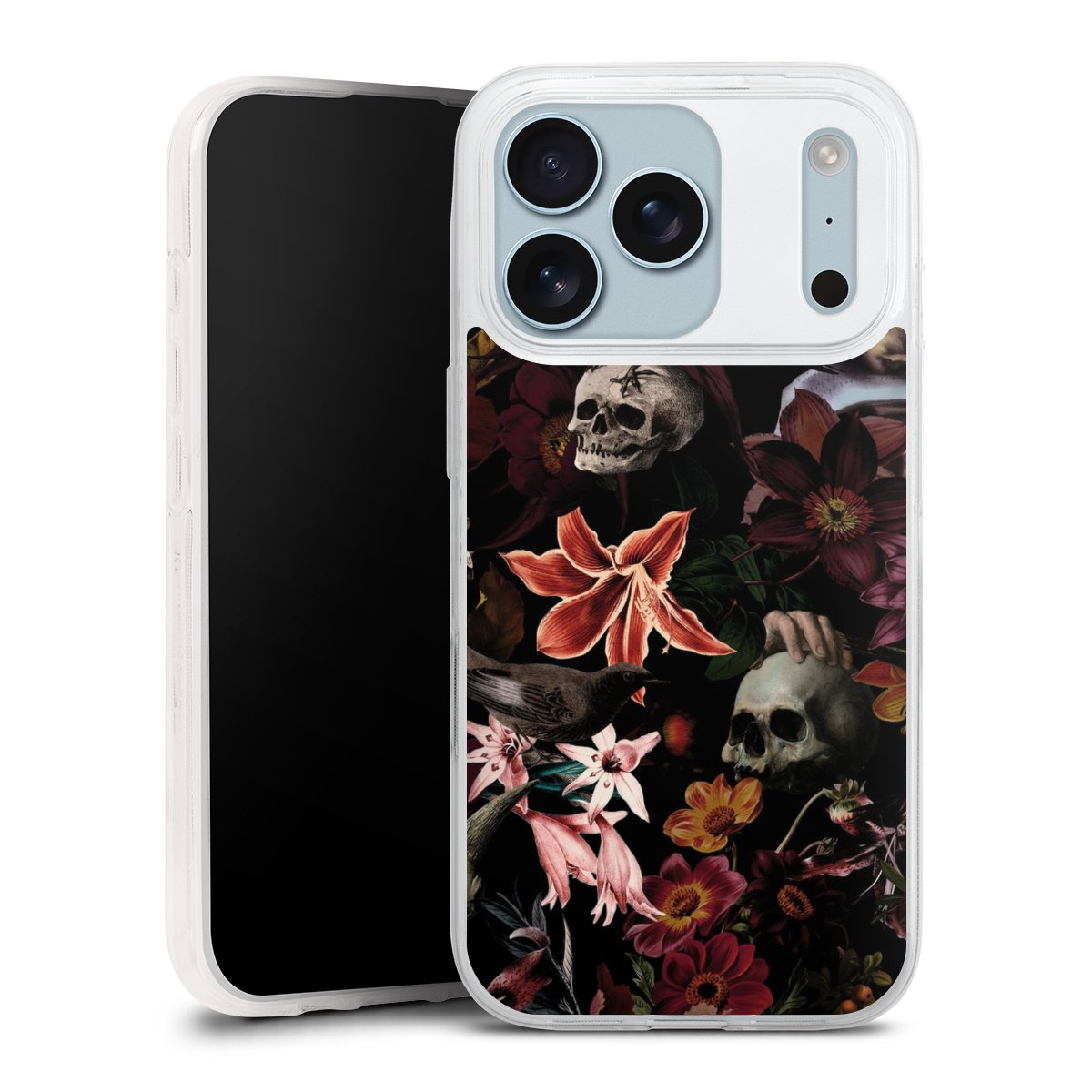 Skulls and Flowers on Dark Background