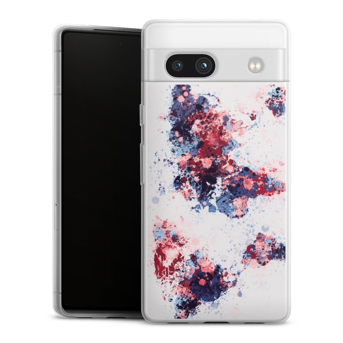 World Map Paint Splashes Blue Red