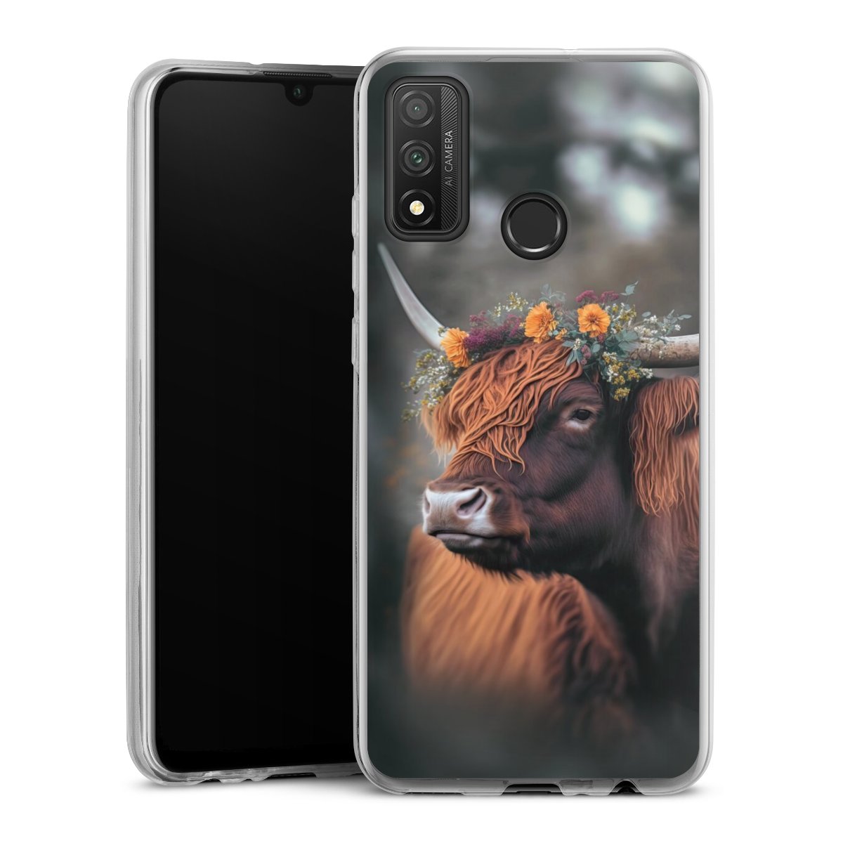 Highland Cow With Flowers with AI