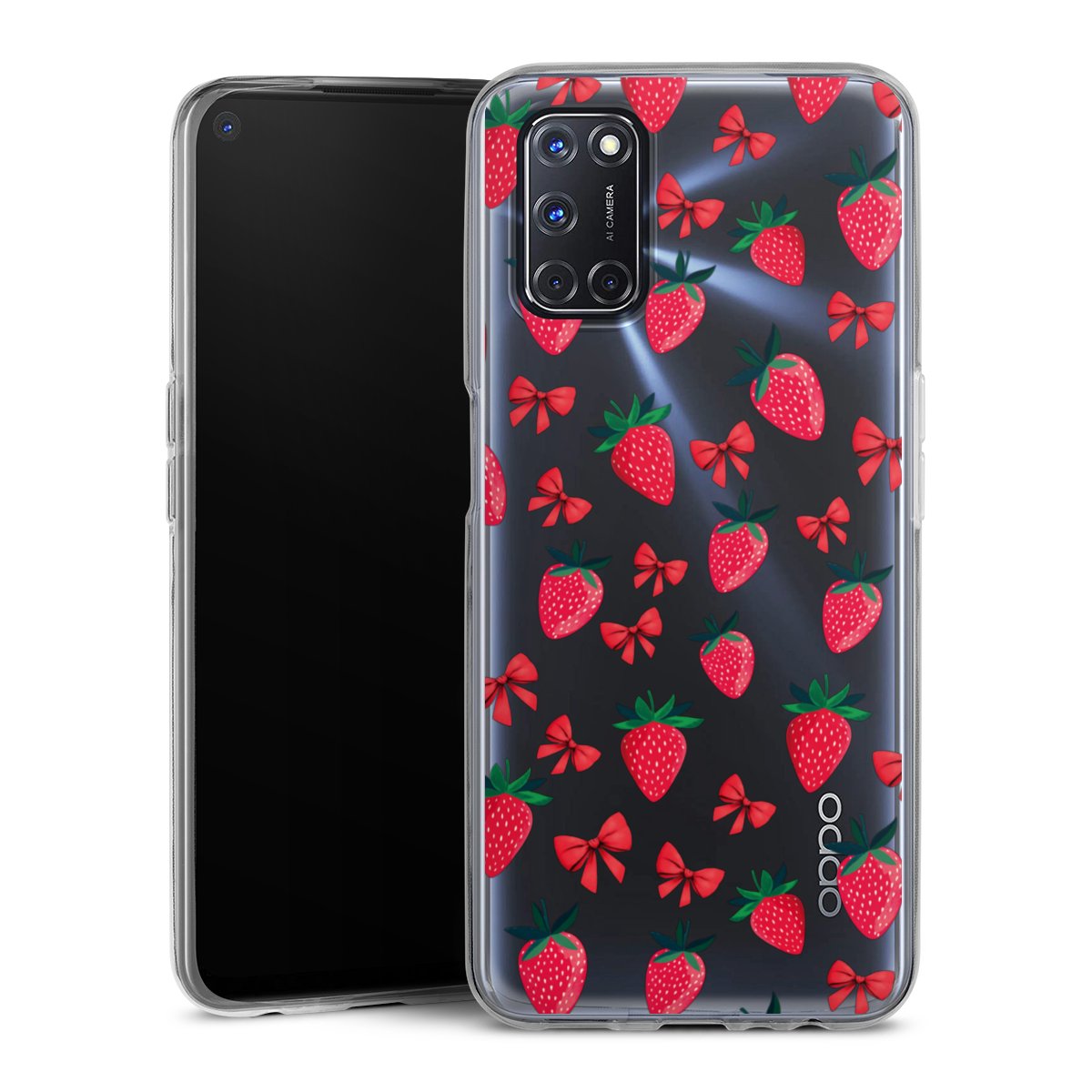 Strawberry Heart Ribbon Pattern Transparent