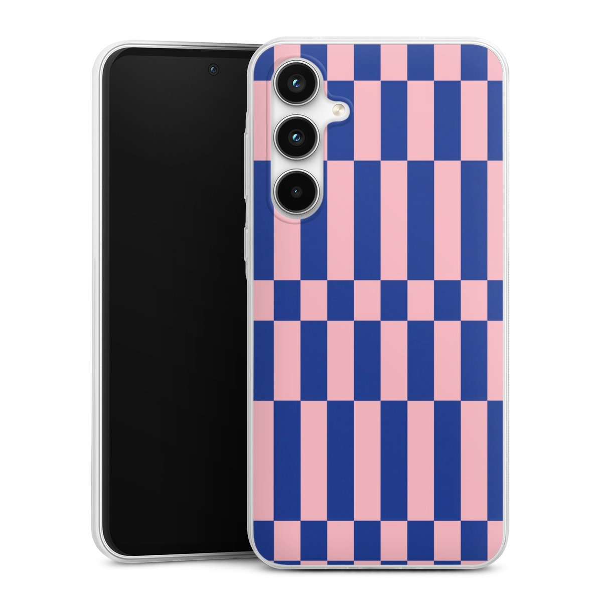 Checked Abstract Bold Electric Blue and Pink Color Block