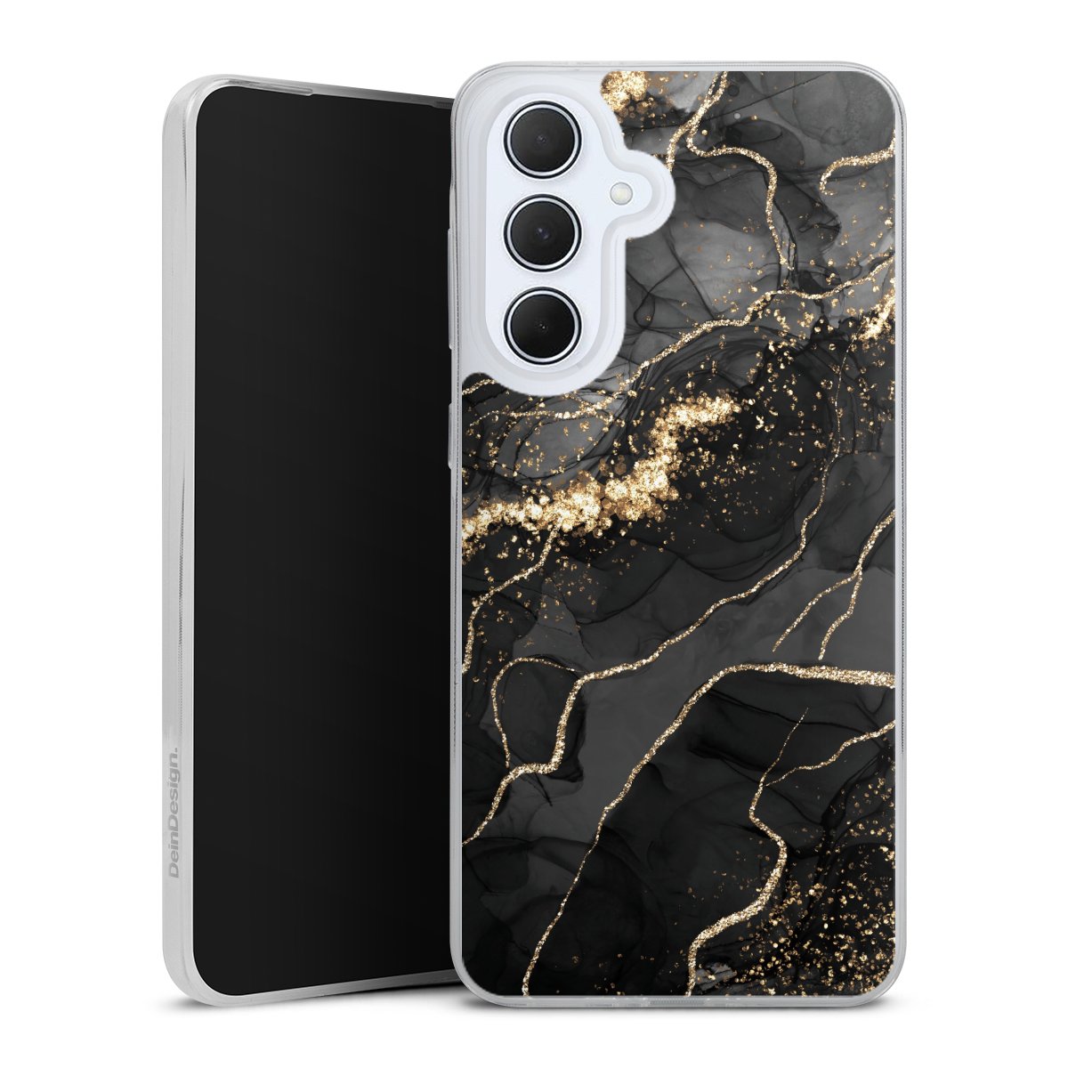 Dark Marble Swirls Gold Look