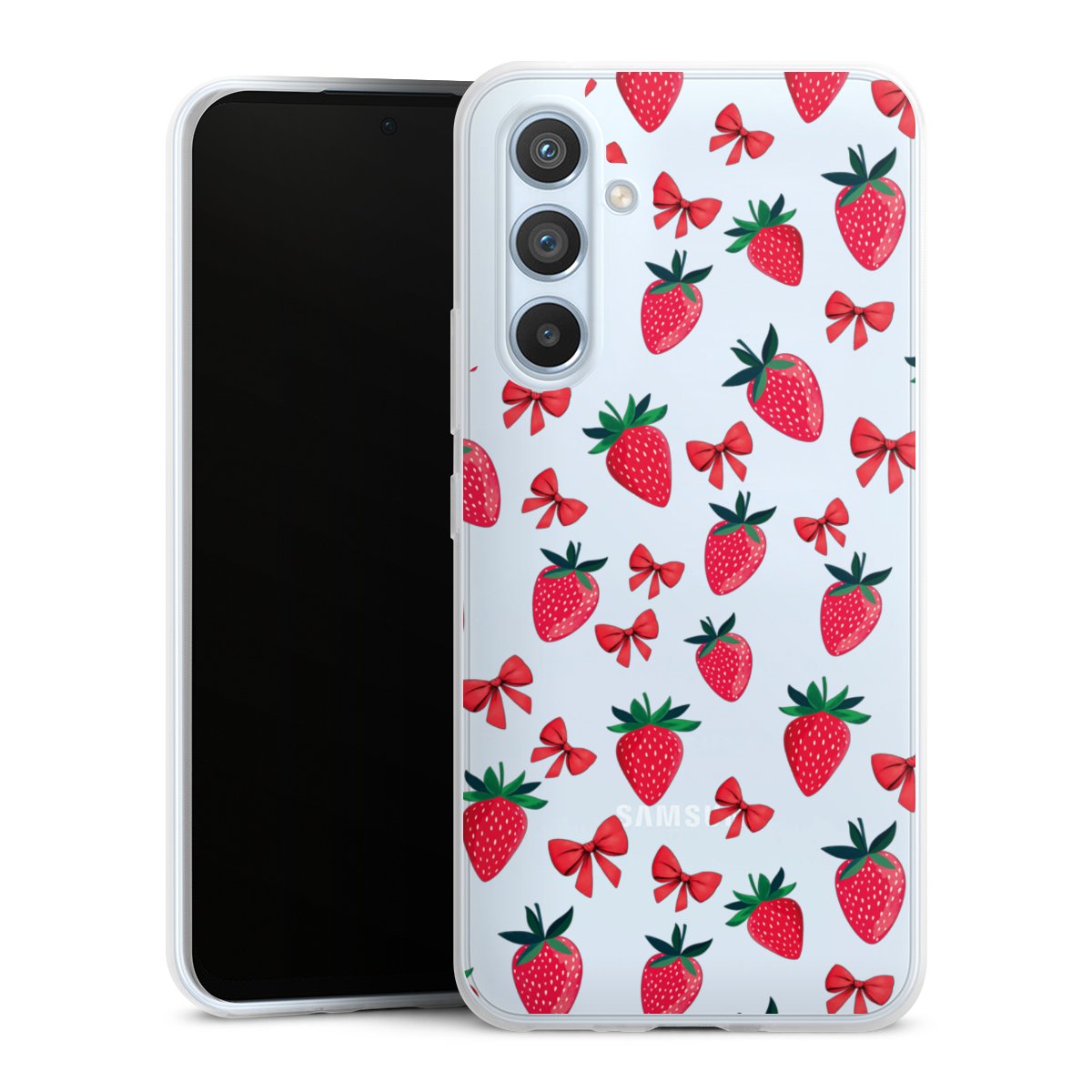 Strawberry Heart Ribbon Pattern Transparent