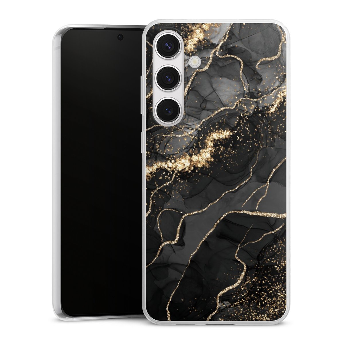 Dark Marble Swirls Gold Look