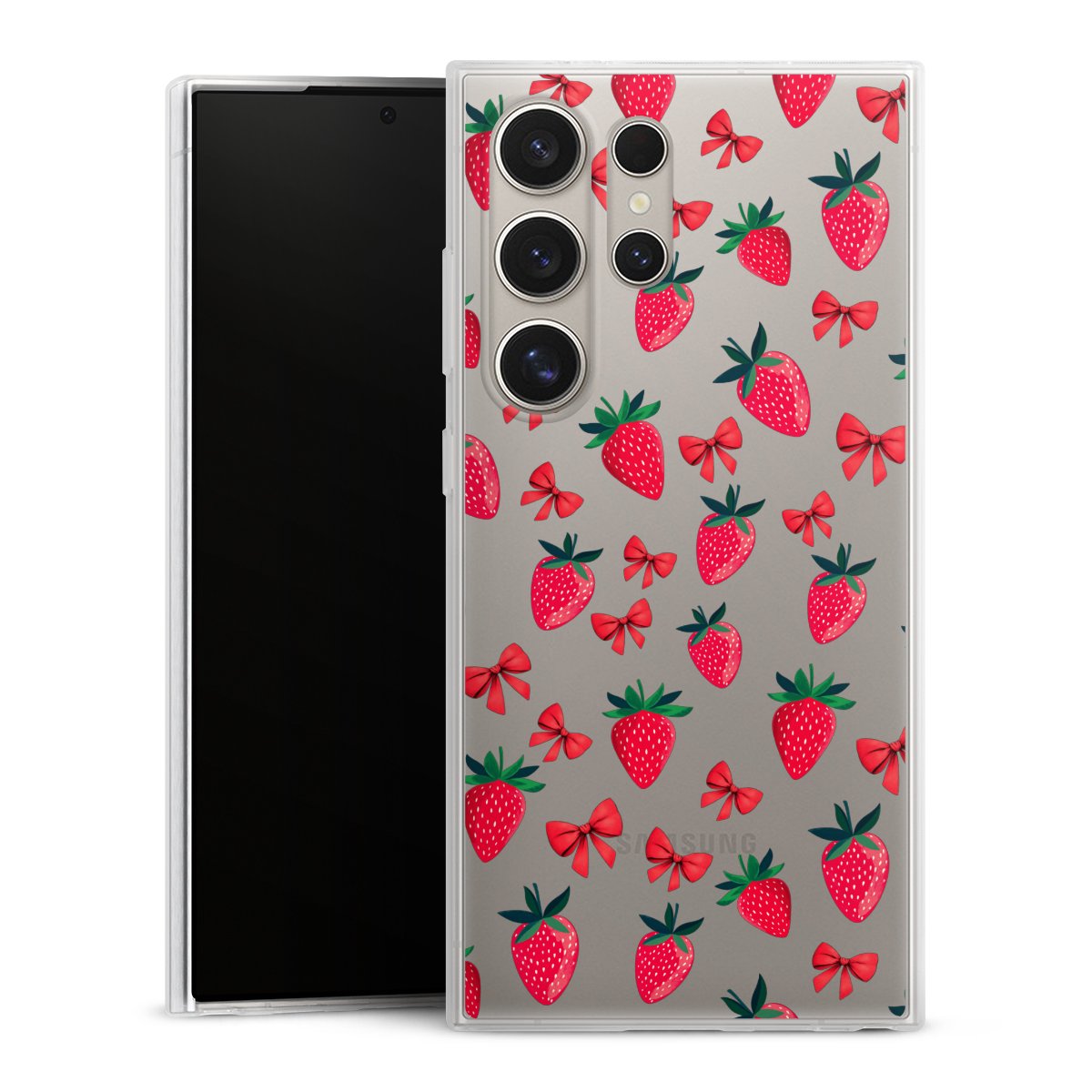 Strawberry Heart Ribbon Pattern Transparent