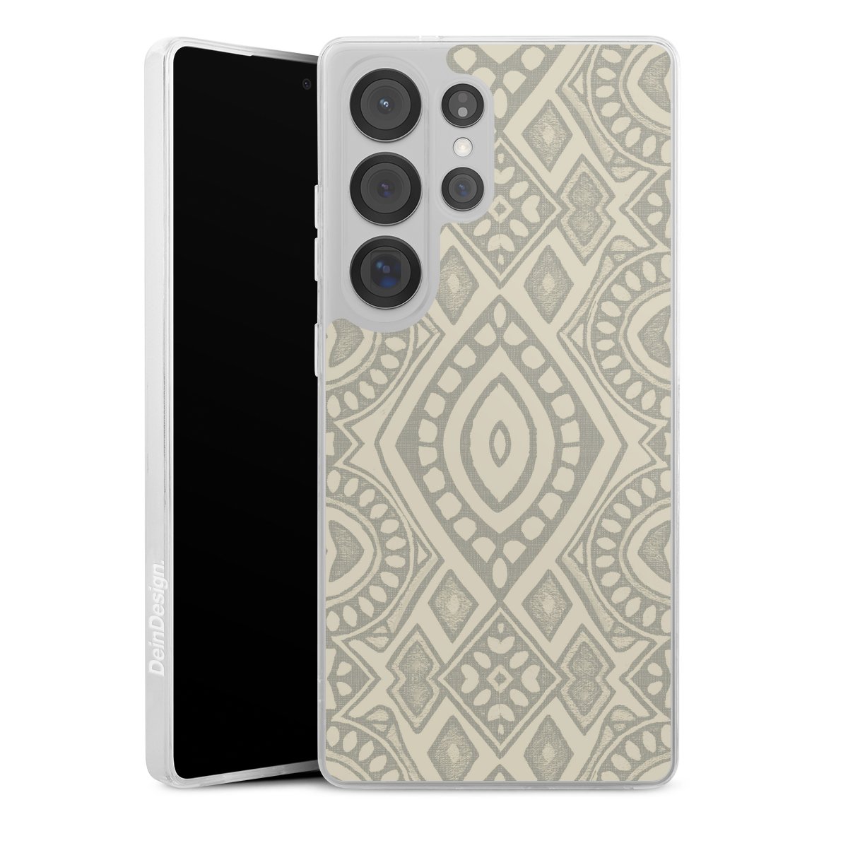 Boho Geometric Mosaic Pattern Neutral Grey and Beige