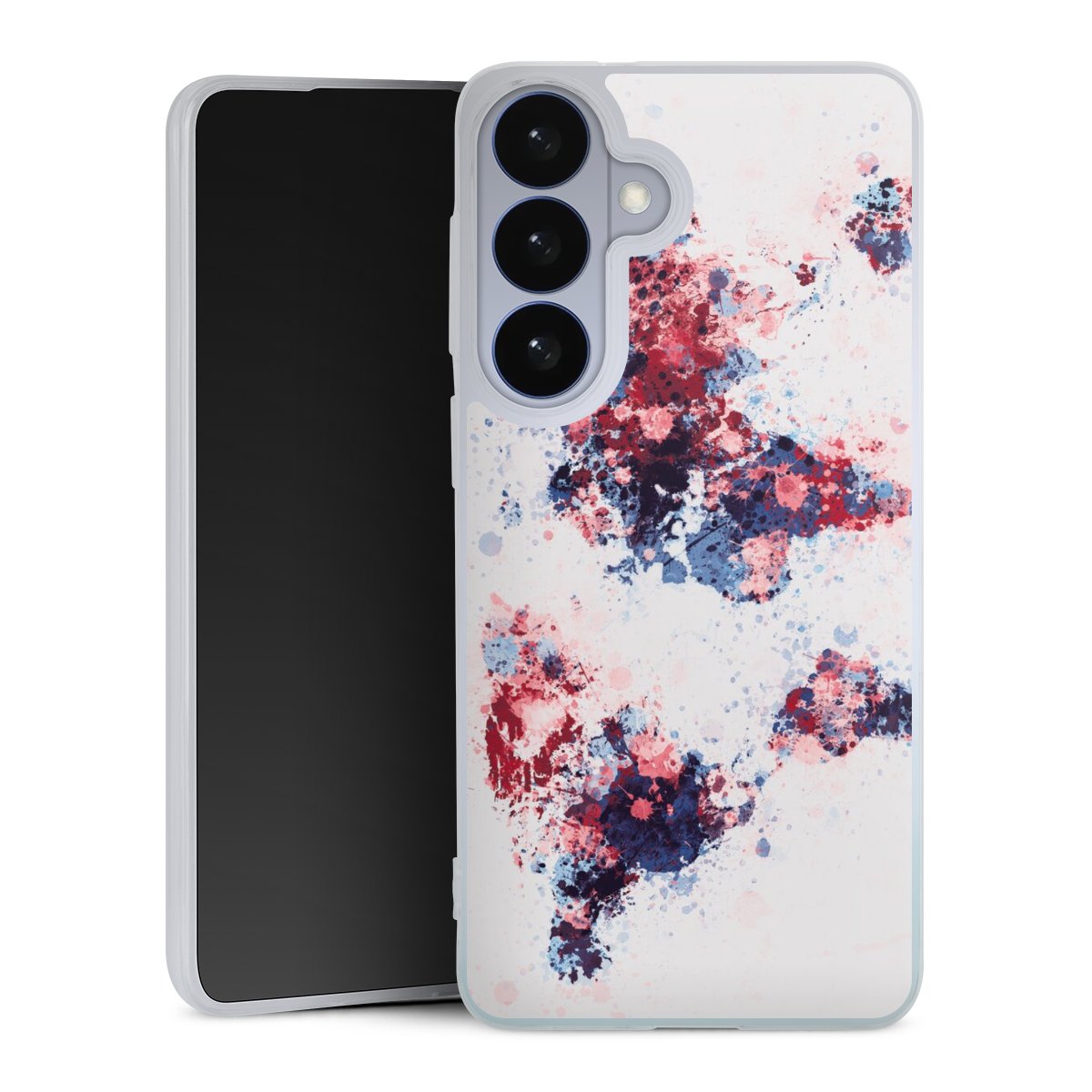 World Map Paint Splashes Blue Red