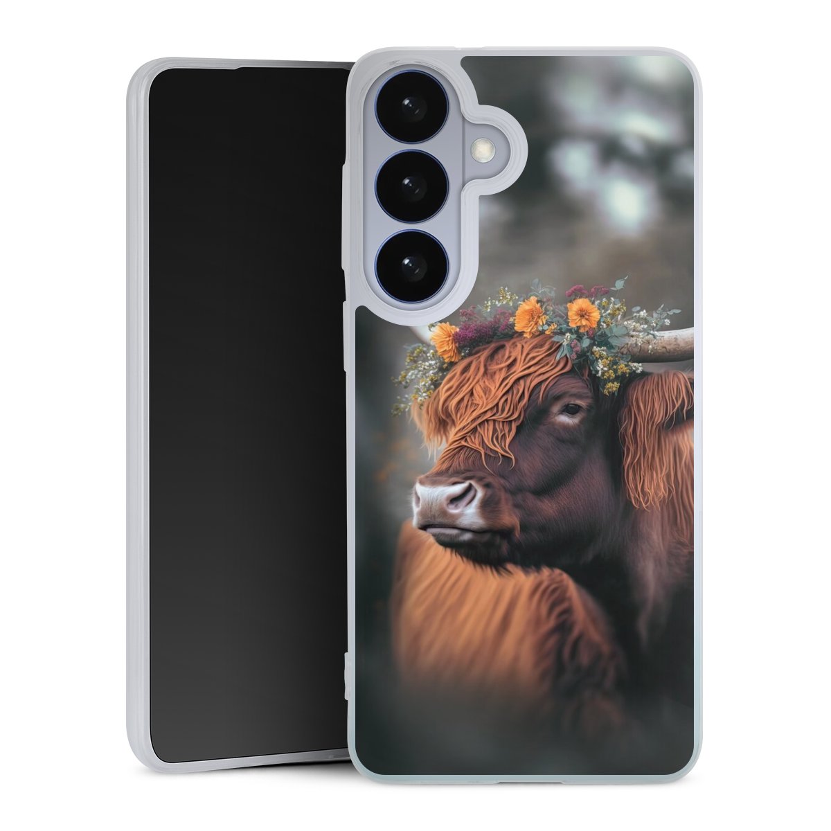 Highland Cow With Flowers with AI