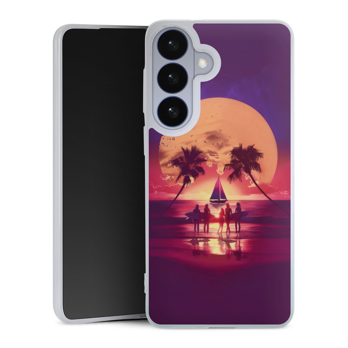 Printteknik För vårt Silikon Slim Case använder vi vår avancerade direkta printteknik. Baksidan är helt printbar, ramen är ej printbar. Du kan beställa telefonskalet utan print, helt eller delvis printat. Välj en av våra exklusiva, färdiga designer eller låt din kreativitet flöda och skapa din egen unika design med dina bilder, lager och text.