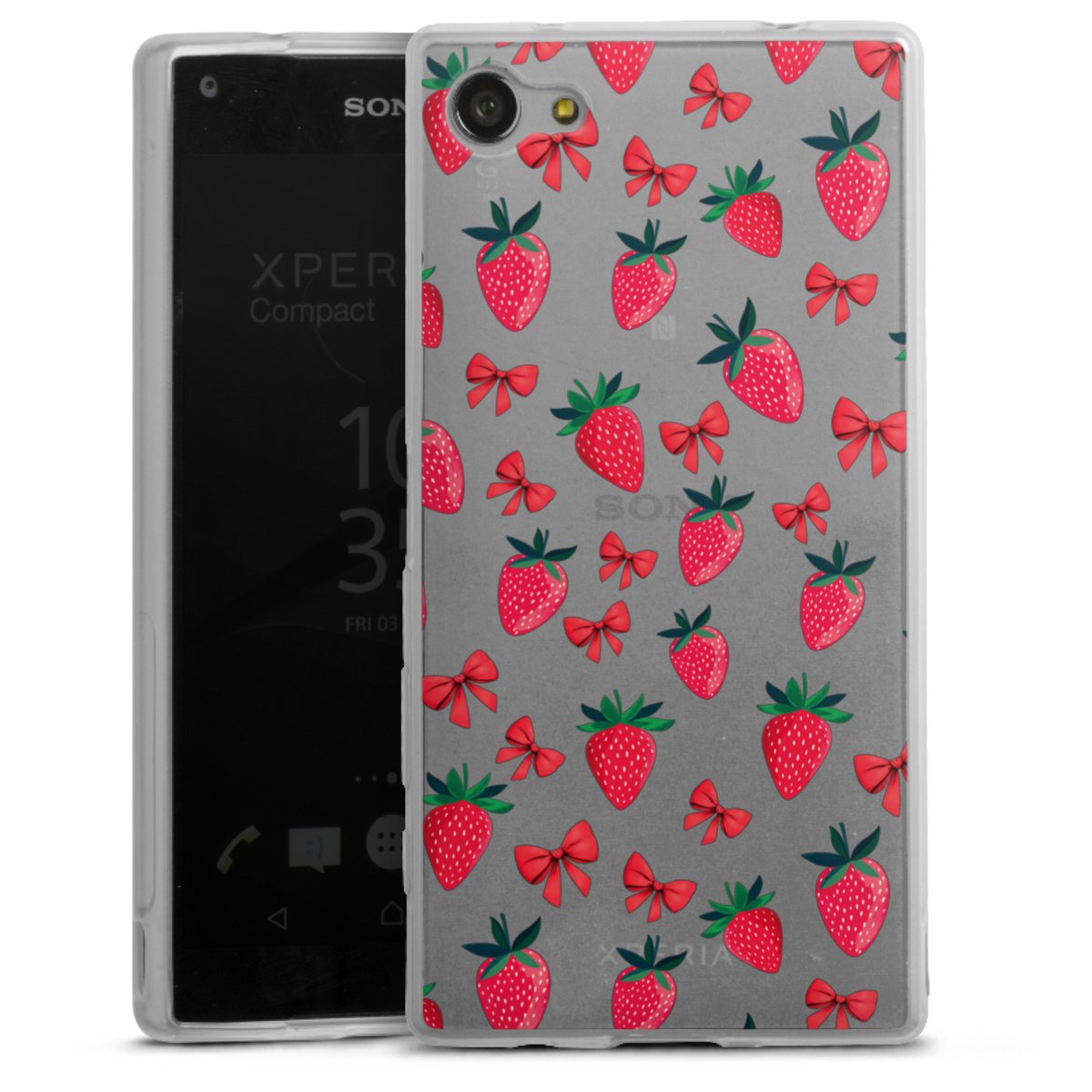 Strawberry Heart Ribbon Pattern Transparent