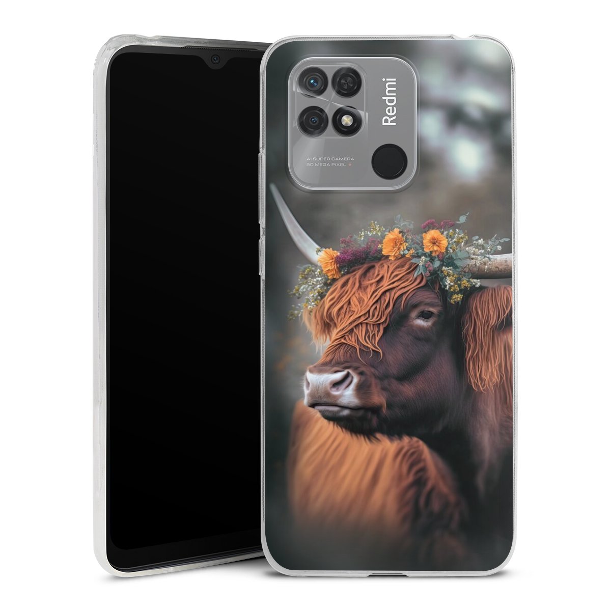Highland Cow With Flowers with AI